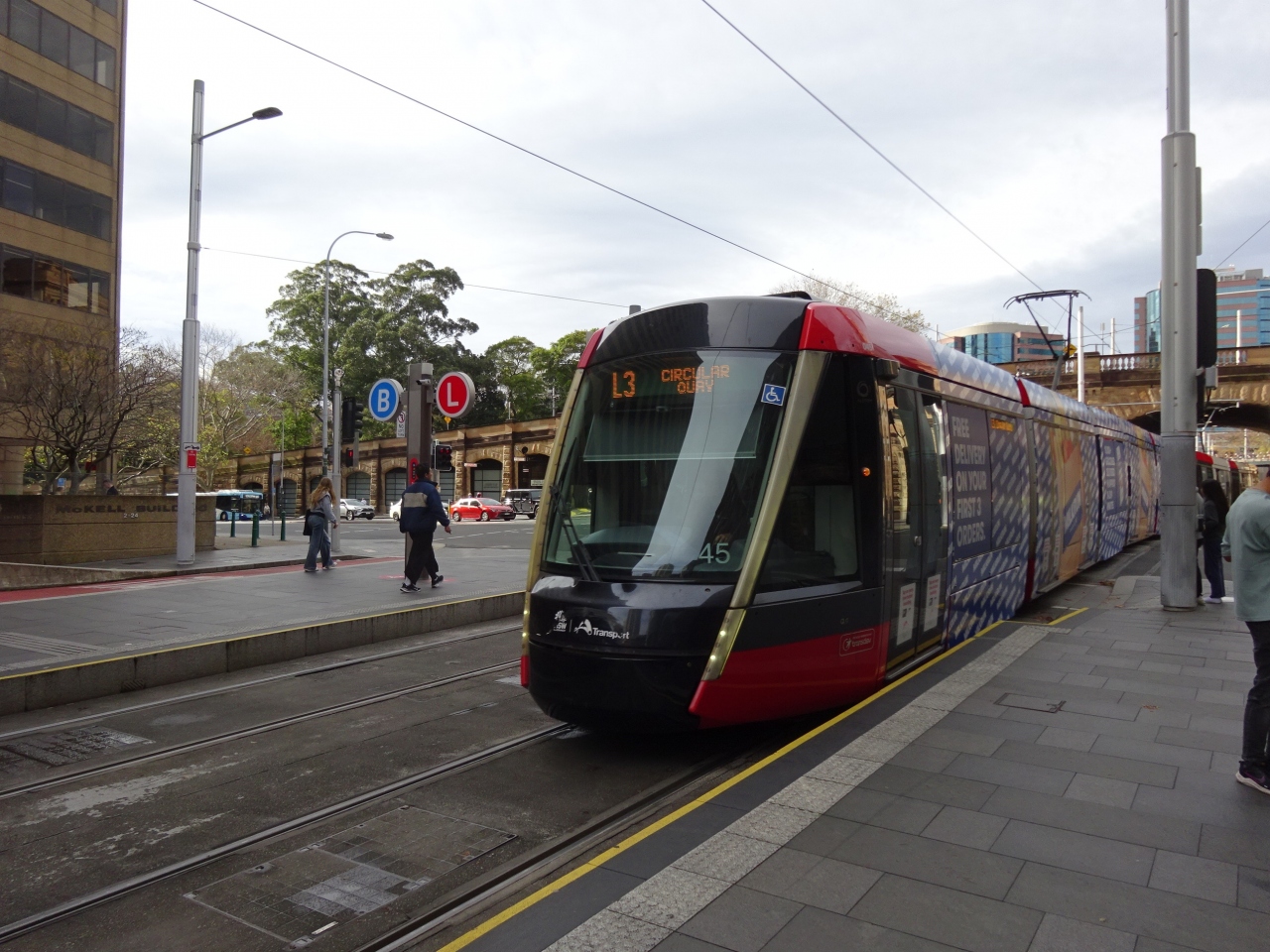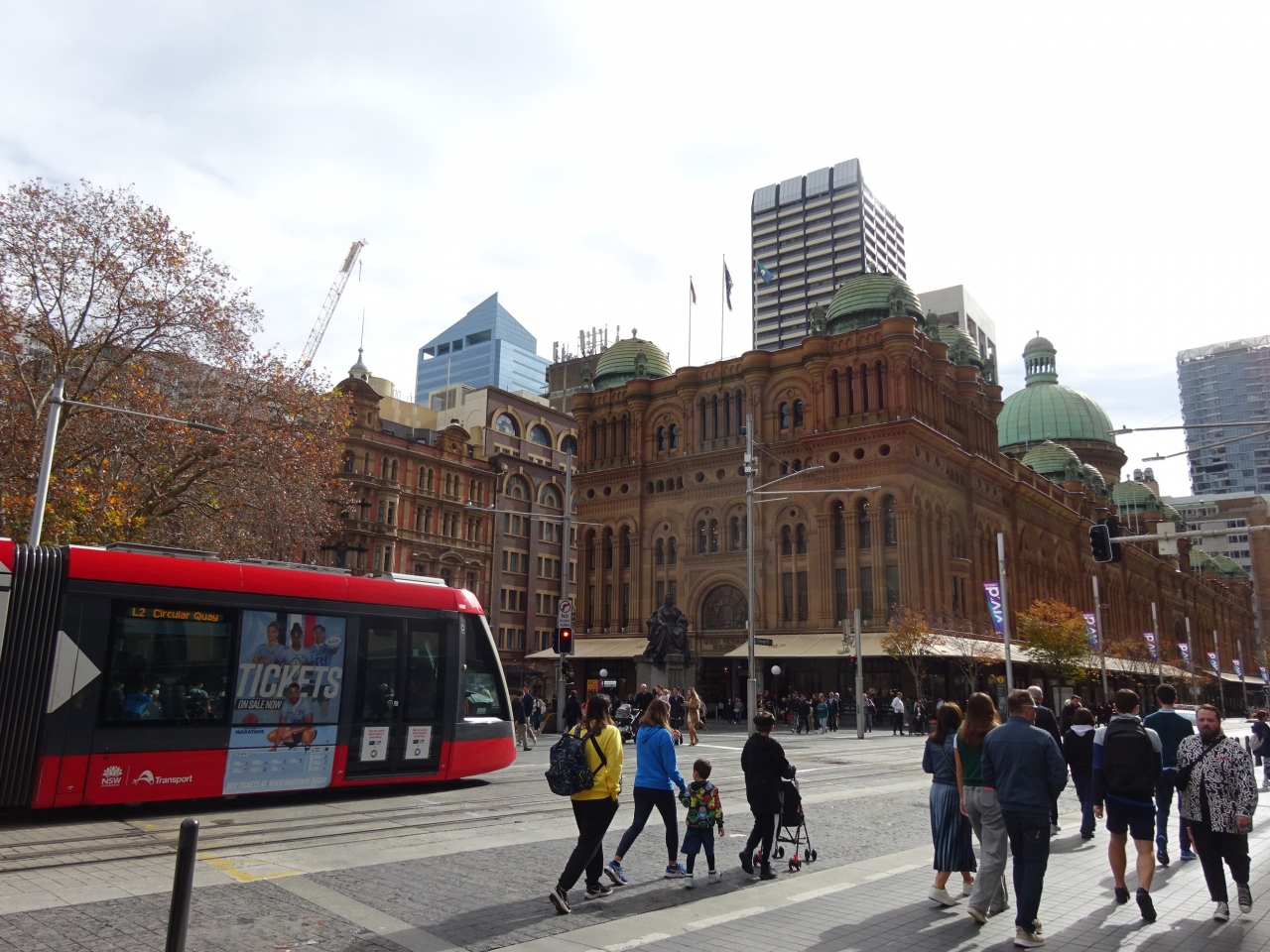 初日は,セントラル駅から「シドニートレイン」に乗ってサーキュラーキー駅まで出掛けましたが,セントラル駅が広くてホームが離れていたので2日目・3日目は「ライトレール」を利用して市内を移動しました。