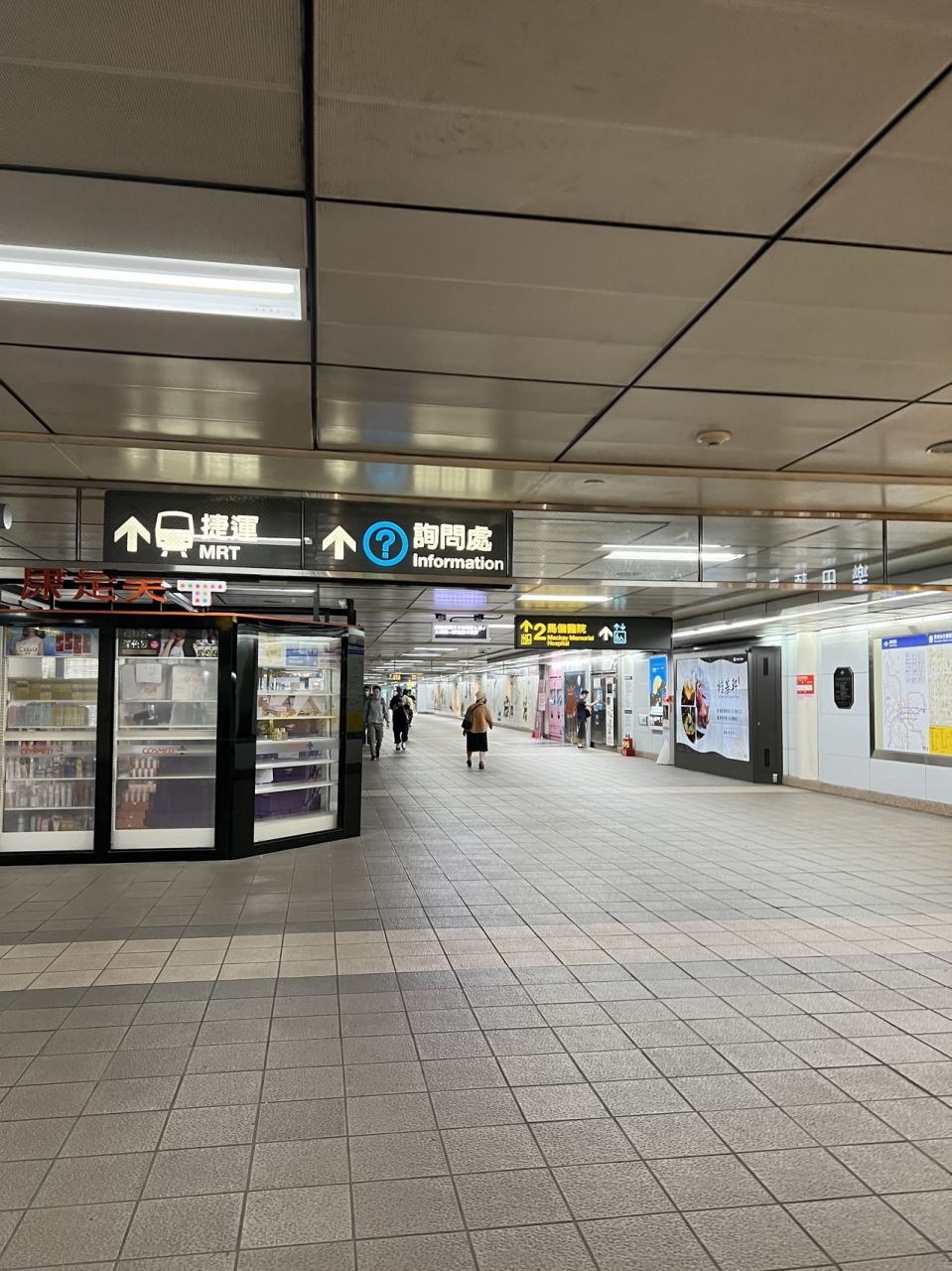 郊外ツアーに参加した時の集合場所に行くときと、赤峰街に行くときに利用しました。地上に上がると公園になっていて、この公園は線路沿いに南北に伸びています。地下には商店街もあり、台北駅から二駅離れているだけですが、人も台北駅ほど多くないし、周囲にはおしゃれな飲食店やお店もあって、ちょっといい雰囲気でした。