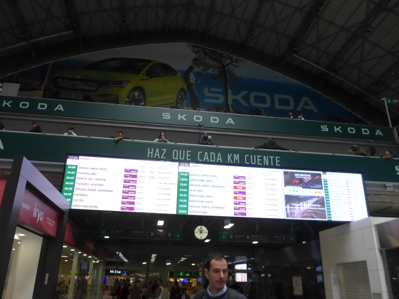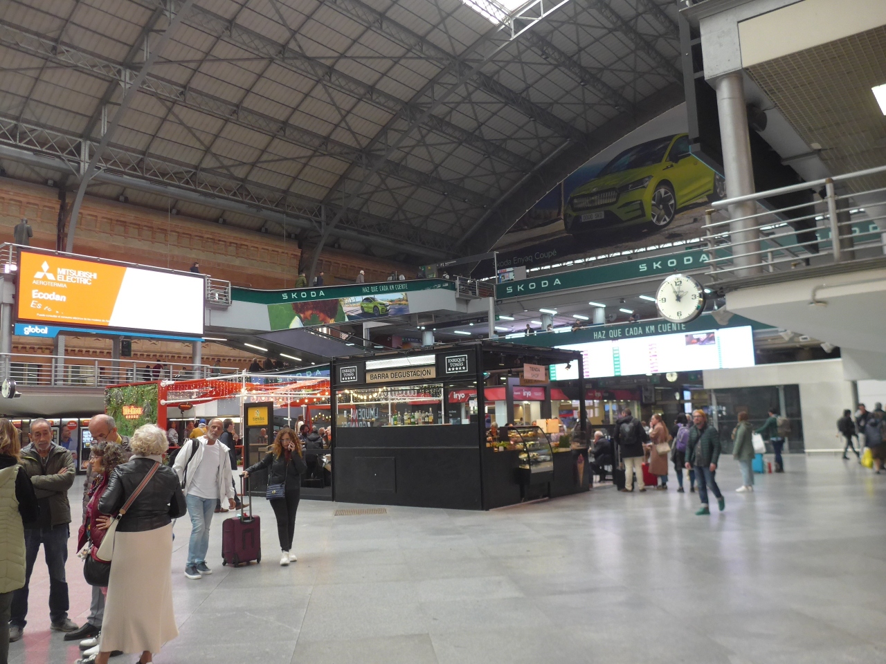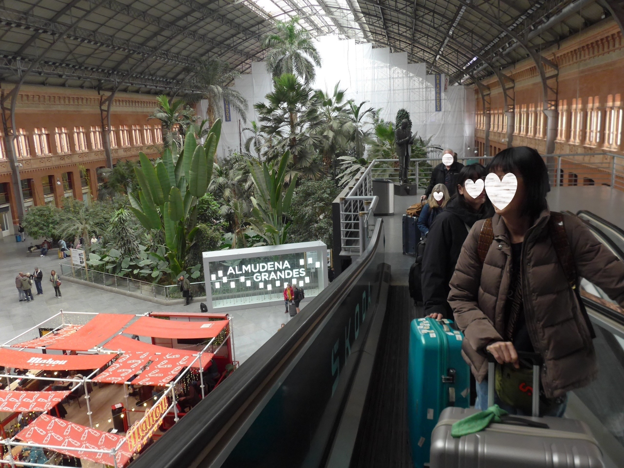 アトーチャ駅はマドリードの中心となる駅でバラハス空港のrenfeでの往復やスペイン各地へ行く高速鉄道AVEの発着駅として多くの人々が沢山利用している駅です。