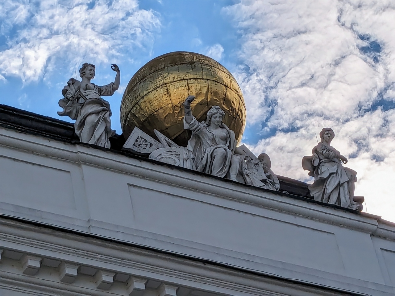 パラヴィチー二宮殿に囲まれていて、建物上部の彫刻も美しいです。