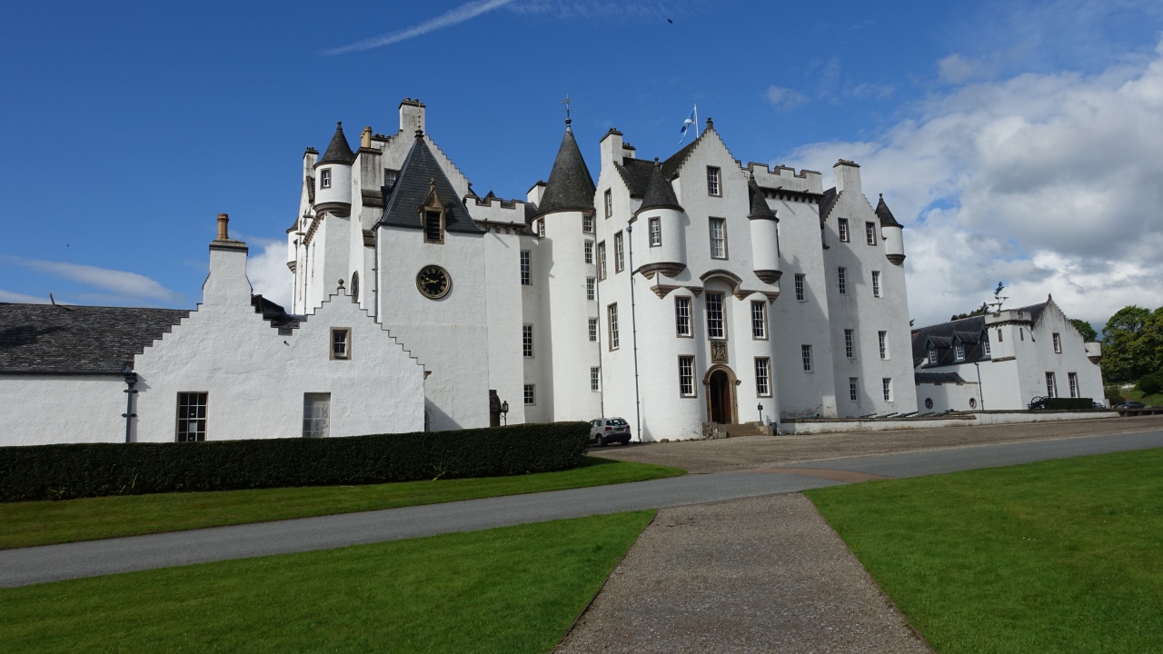 ブレア城は美しい白亜の城。18世紀初頭からアソール公爵家の城になり、イギリスで唯一私兵を持つことを許されている。昭和天皇が皇太子時代にここのお泊りになり、その時植樹されたブナの大木が今も残っている。時間の関係で外観しか見ていないが、城内の武器や衣装のコレクションが充実してるらしい。但し写真撮影は禁止。広大なヘラクレスの庭園がありここの見学は無料。