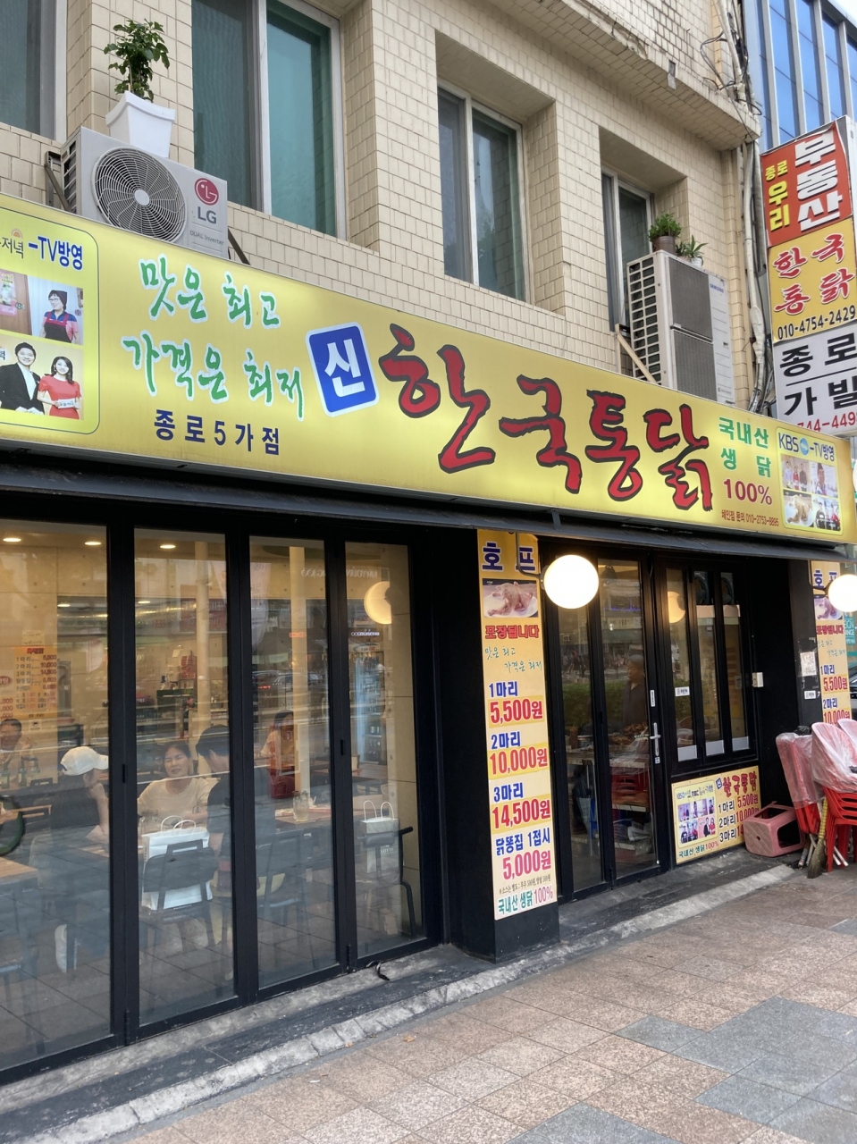 一羽5,500,二羽10,000,三羽14,500ウォンとの表示。何処も値上がりしてますね。大根漬けも一個購入しました。確か500ウォンだったかな…
