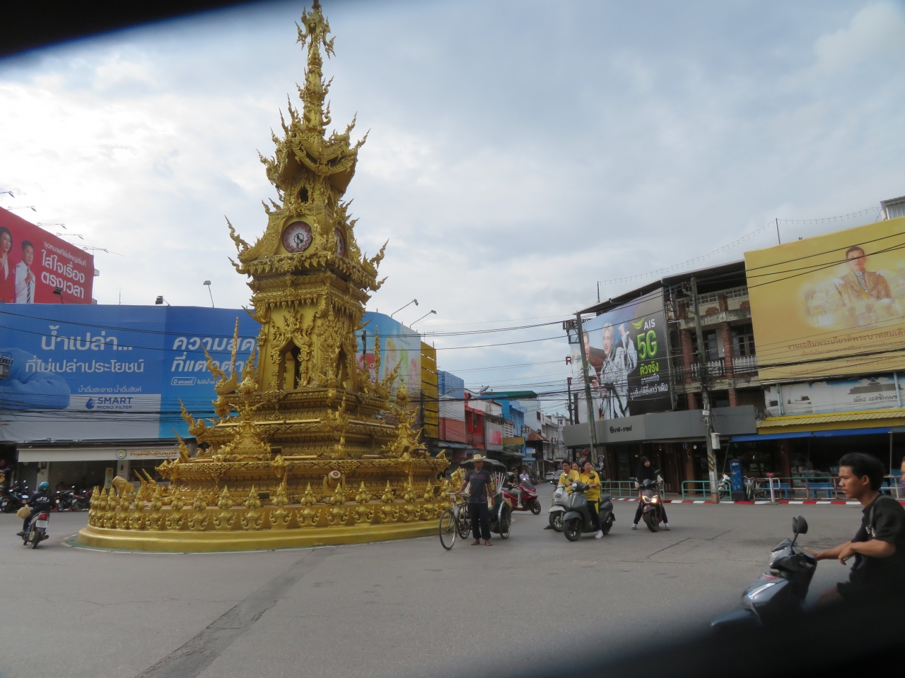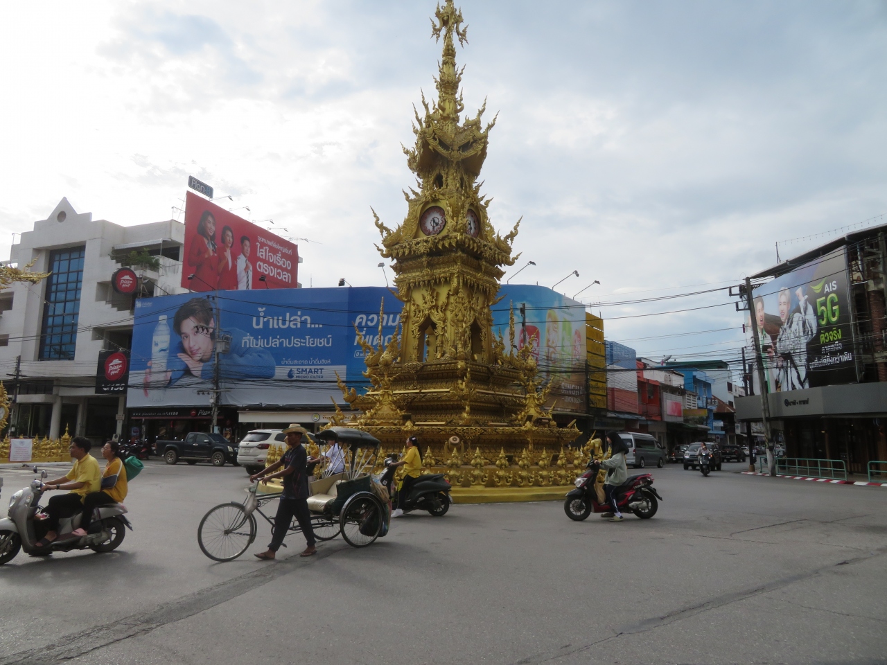 朝の散歩がてらの常設市場散策の往路復路の目印にしている。常宿のワンカムホテルから徒歩5分足らずの距離。朝に夕なに美しい姿で、存在感を示している。チェンライの象徴的存在です。出会いは、チェンライへ舞い戻ってきたとの感がします。
