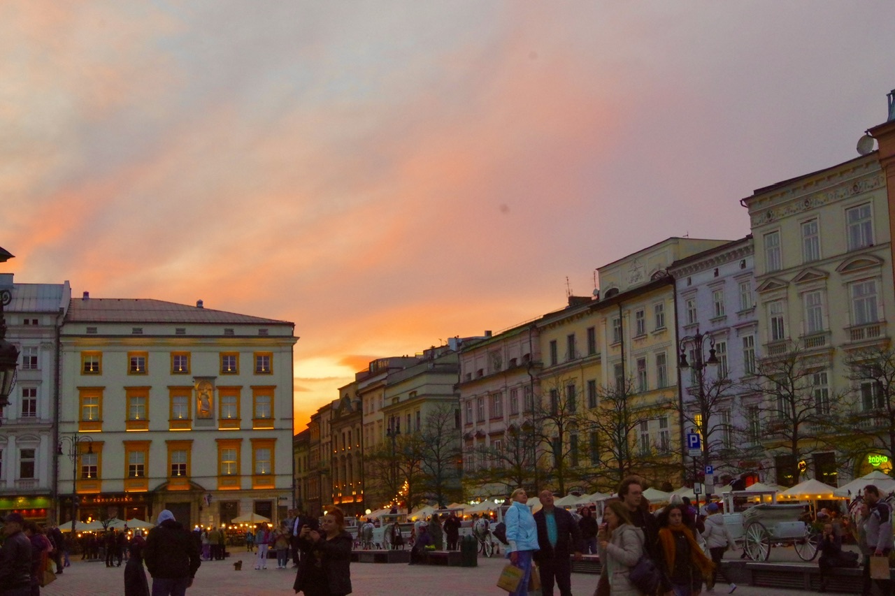 クラクフの旧市街の中心。 暗くなっても治安は良かったです!