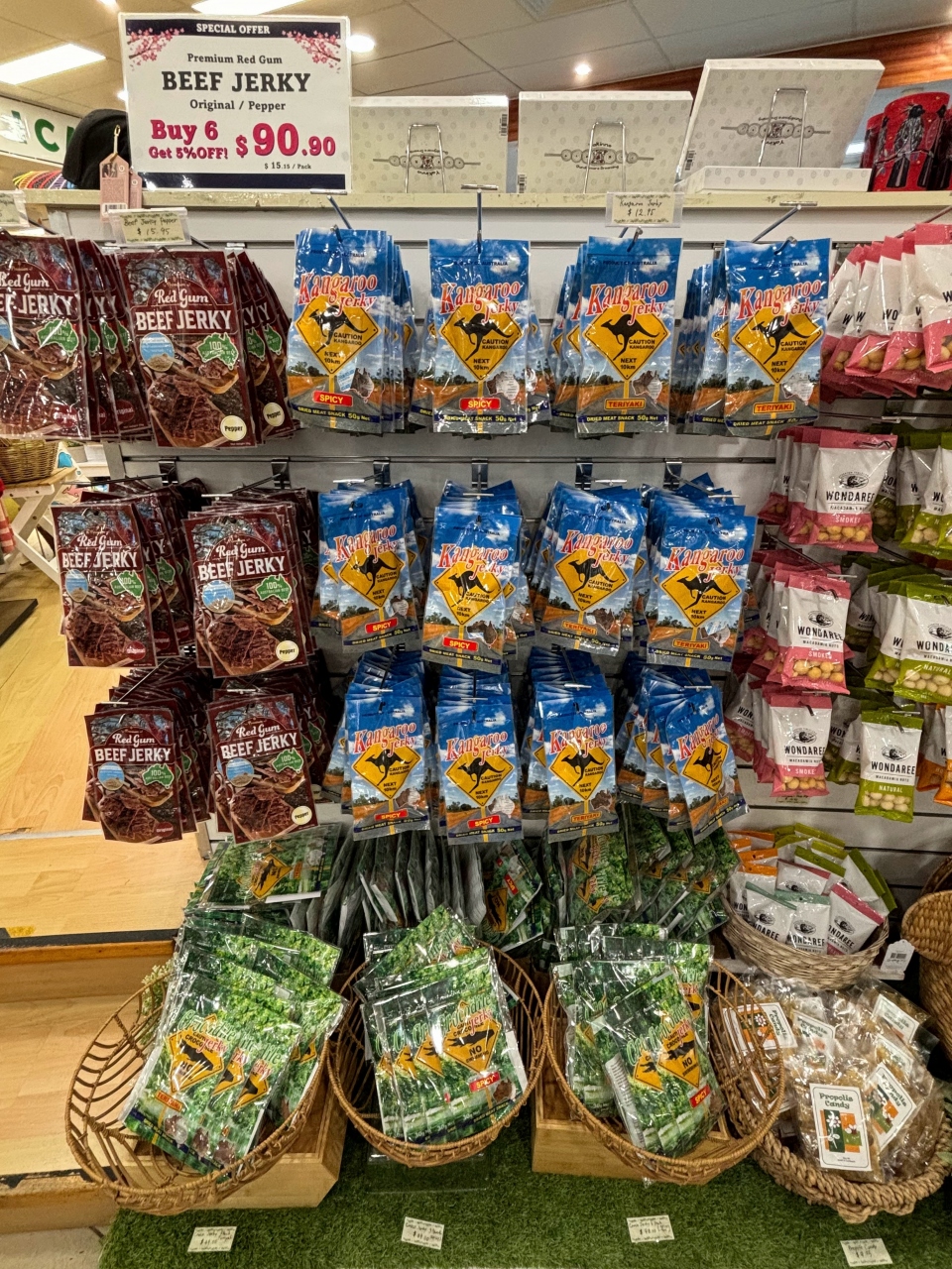 エミュー、カンガルー、クロコダイル等のジャーキーが売っているのでオーストラリア見上げには良いのかも。
