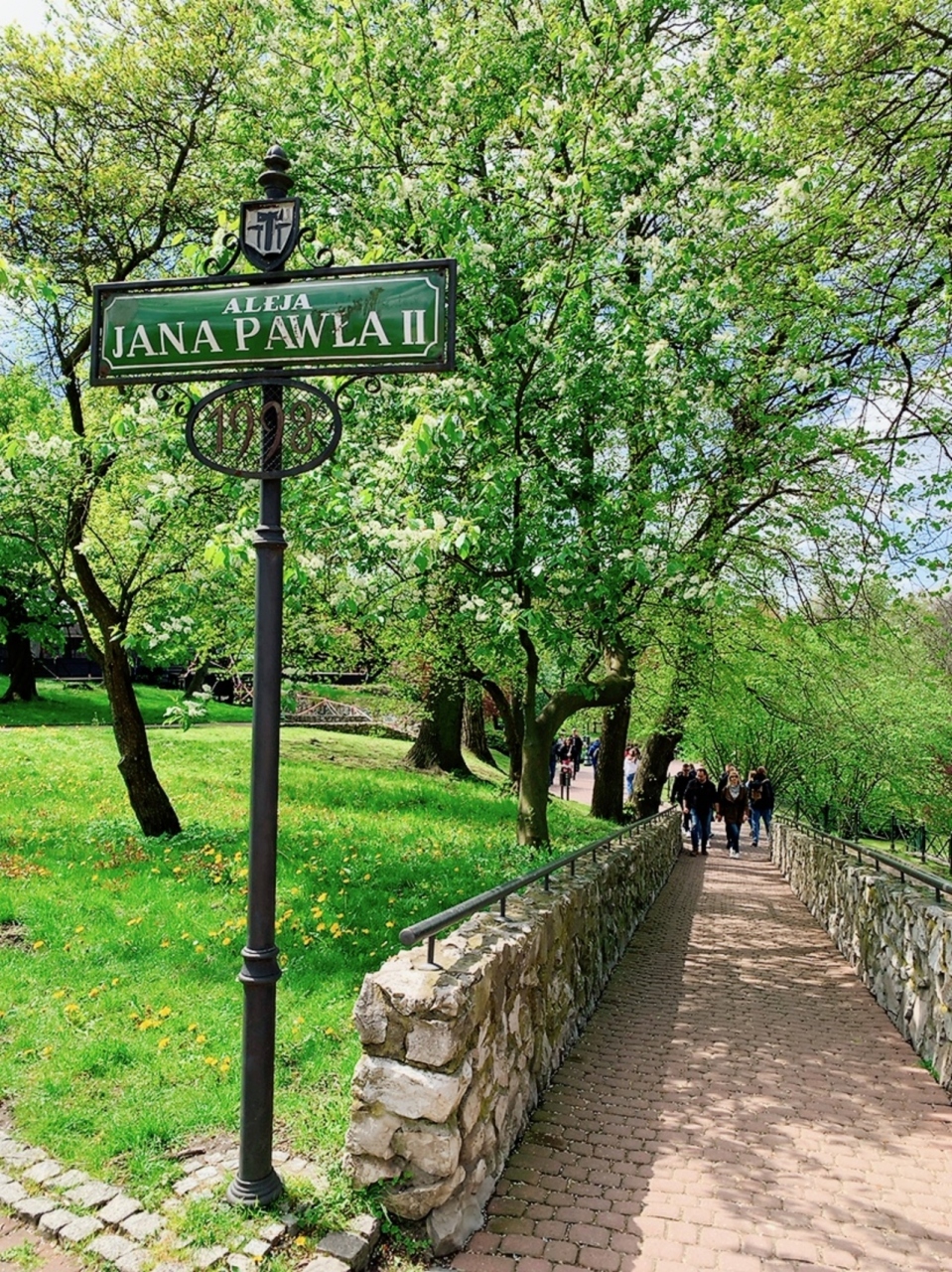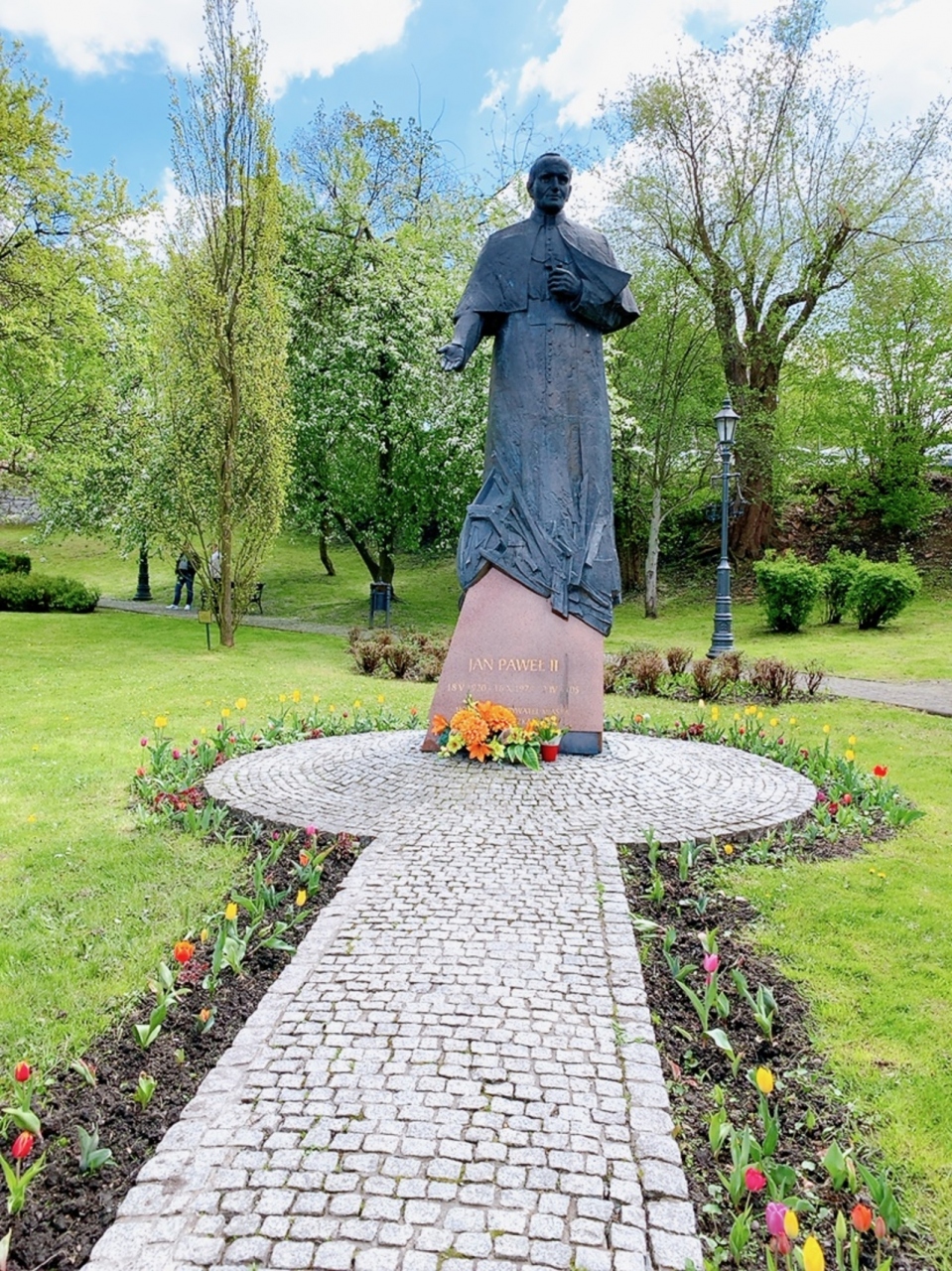 ツアーが終わった後にちょっと街歩きをした中で素敵だと思ったのは、淡いピンクの建物が上品なSt. Clement's Church。 内部の装飾もかなり豪華絢爛でした! その近くに広がるAleja Jana Pawla IIという公園も、緑が多くて、市民の憩いの場という感じでした。 公園内に設置されていたPomnik Jana Paula 二世の銅像は、市民の方々に大切にされているよう像のようで、お花も供えられていました。