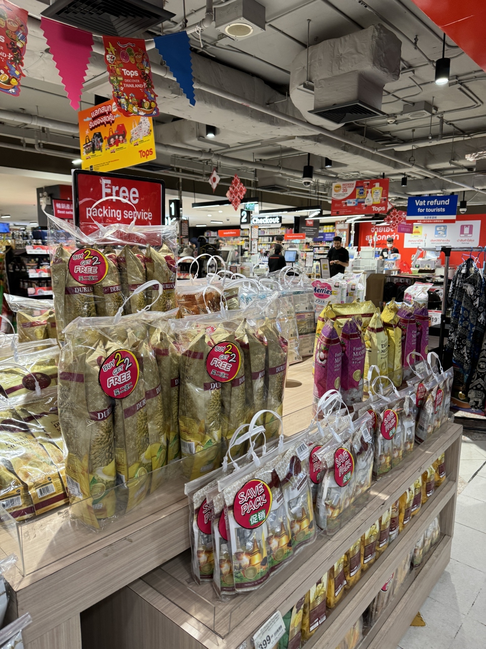 マーブンクロンセンターの地階にもトップスがあります。案内板にもトップスのロゴでわかりやすく案内されているので、迷わず到着出来ます。付近にはフードコートとおみやげやさんもあるので、一網打尽に買物が出来るのがいいですね。