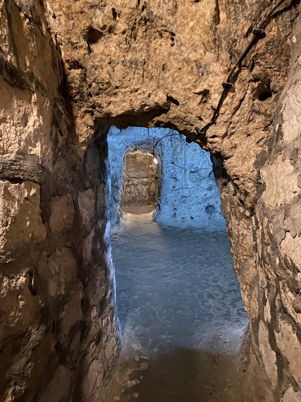グリーンツアーに参加して行きました。古代ローマ時代にキリスト教信者が弾圧から逃れるために住んでいたところです。現地ガイドの話によると、上の階は家畜や食料の保管庫になっているとのことでした。教会の場所は、部屋が十字になっていました。