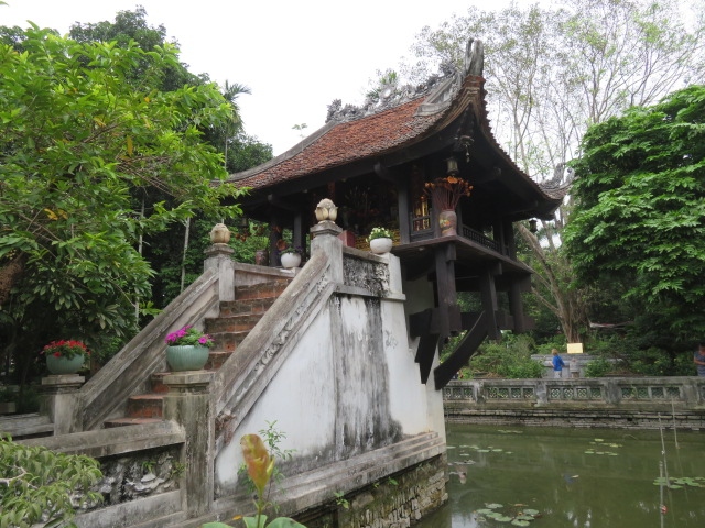 ホーチミンの家からバーディン広場に行く途中にあるお寺です。池の上に本堂が浮いてるお寺で、石造りの階段を上って、本堂にたどり着く構造になっています。この階段を上ってお参りするために、たくさんの人が並んでいるので覚悟していきましょう。