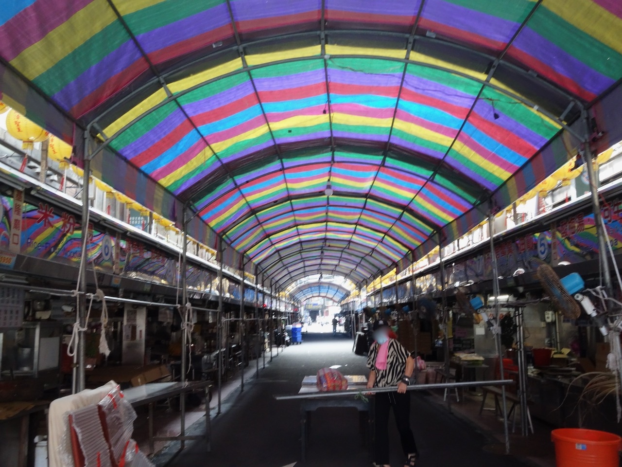 基隆の観光の第一にあがる夜市。基隆駅から海岸通の1本南の忠ニ路を直進するとそのまま仁三路になりそのまま行くと夜市の通りになります。昼からやっている夜市として有名ですが訪問日はたまたま年に一度のおまつりで全店休業。雰囲気をあじわったのみ。でも立派な門ができていたり提灯が多かったり豚の丸焼きがあったり楽しい気分を味わえました。毎年旧暦7月15日ころに行われる基隆中元祭り、でした。