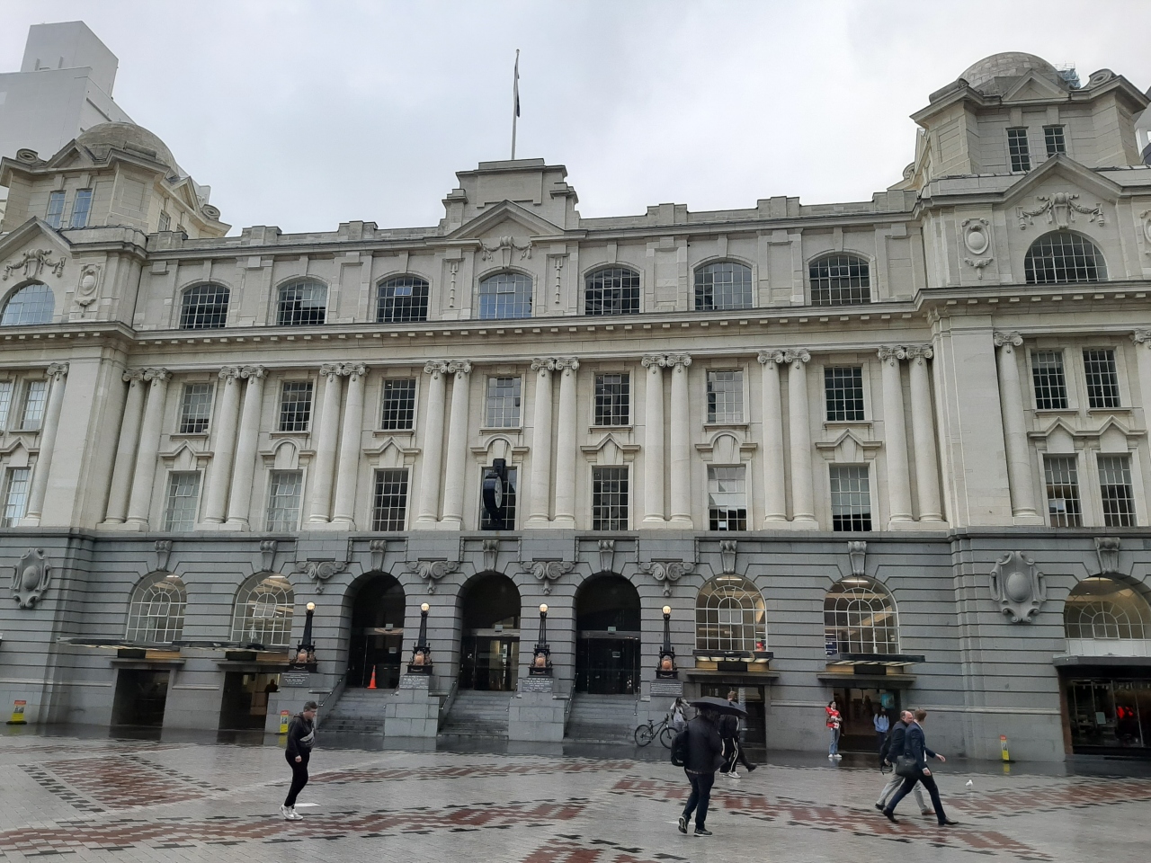 クイーン通りの突き当りの海沿いにある歴史的な建造物を使った駅。