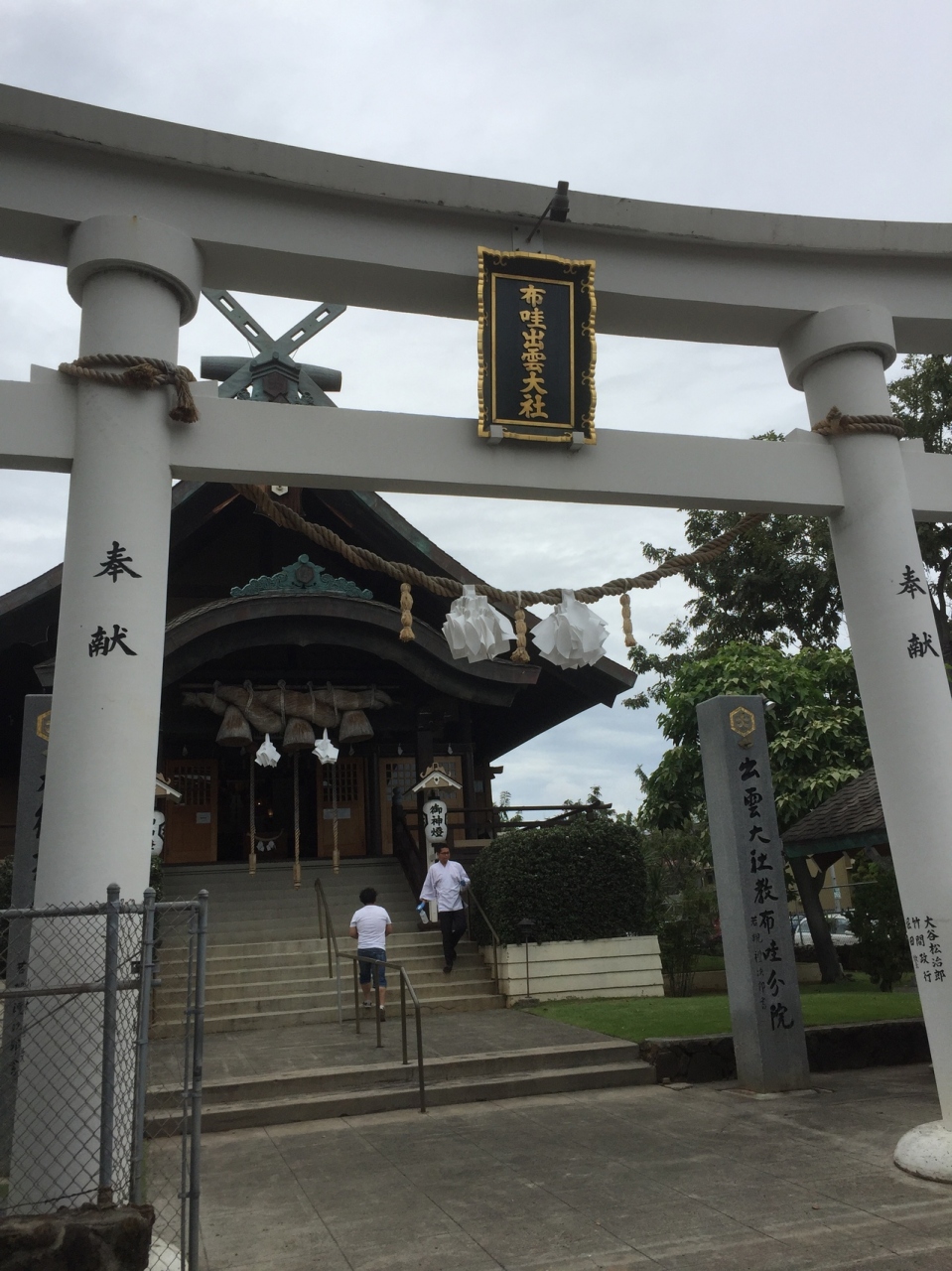 テレビでハワイに出雲大社の分院があることを知り、ハワイに来たら行ってみたいと思っていました。鳥居も、手水舎も、狛犬さんもおり、お守りもありました。ここだけは日本と全く同じ空気が流れていました。ただ、狛犬さんも、御朱印も、アロハー!な感じではありましたが。