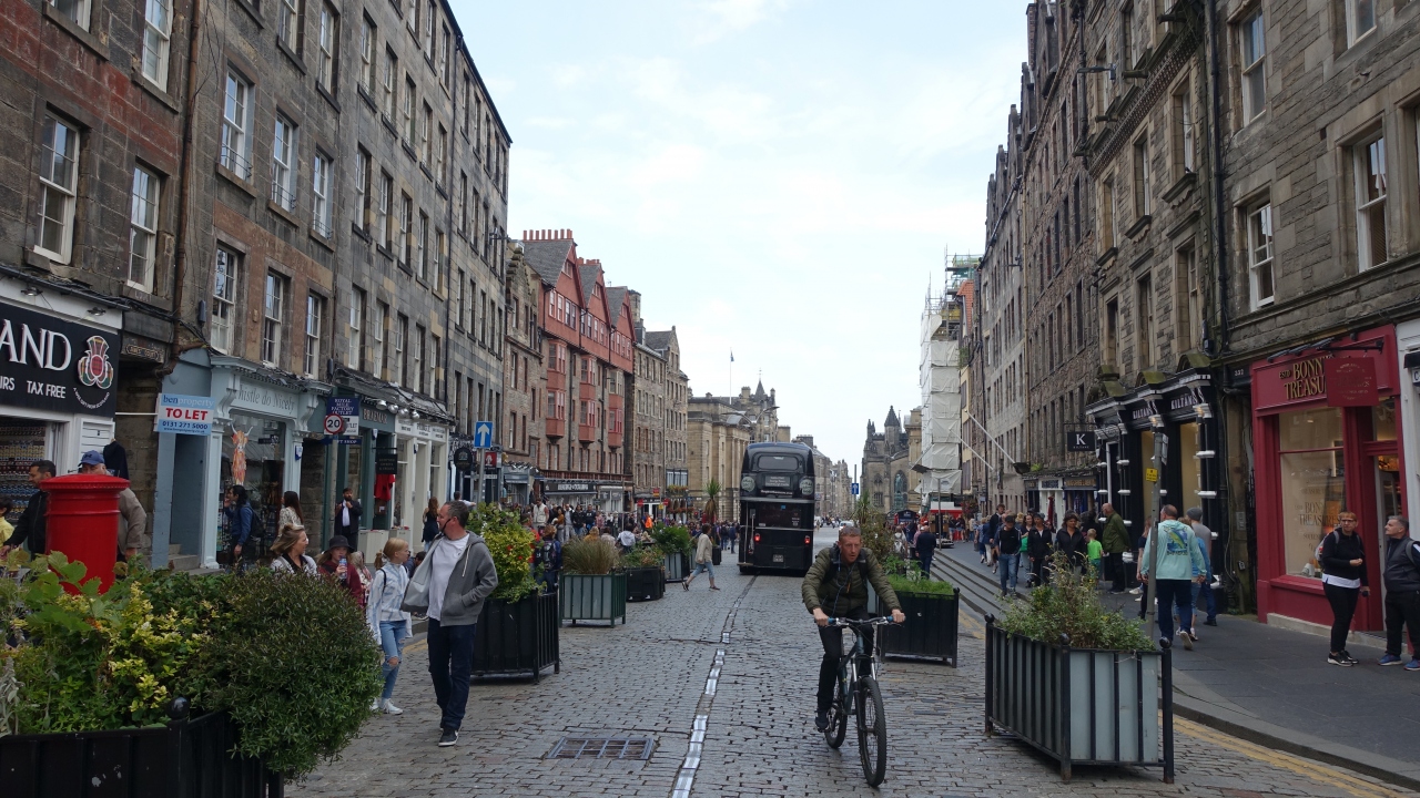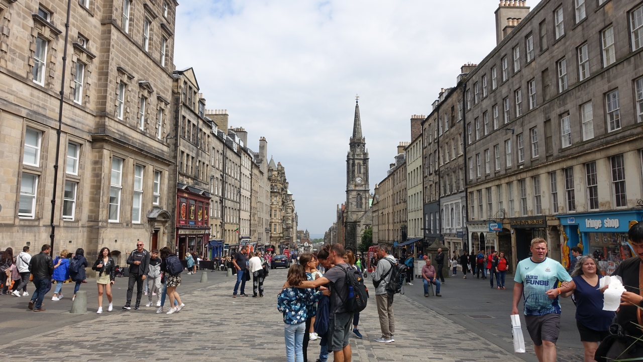 エジンバラ城からホリルードハウス宮殿に至る旧市街の目抜き通り。1.6kmの道の両側には歴史的な建物が並び、ギュッと凝縮された町並の美しさはロンドンより上。特にロイヤルマイルがA7と交差する辺りは重厚な大型建築が集中している。通りではバグパイプ奏者など、多くのパフォーマーを見ることが出来る。