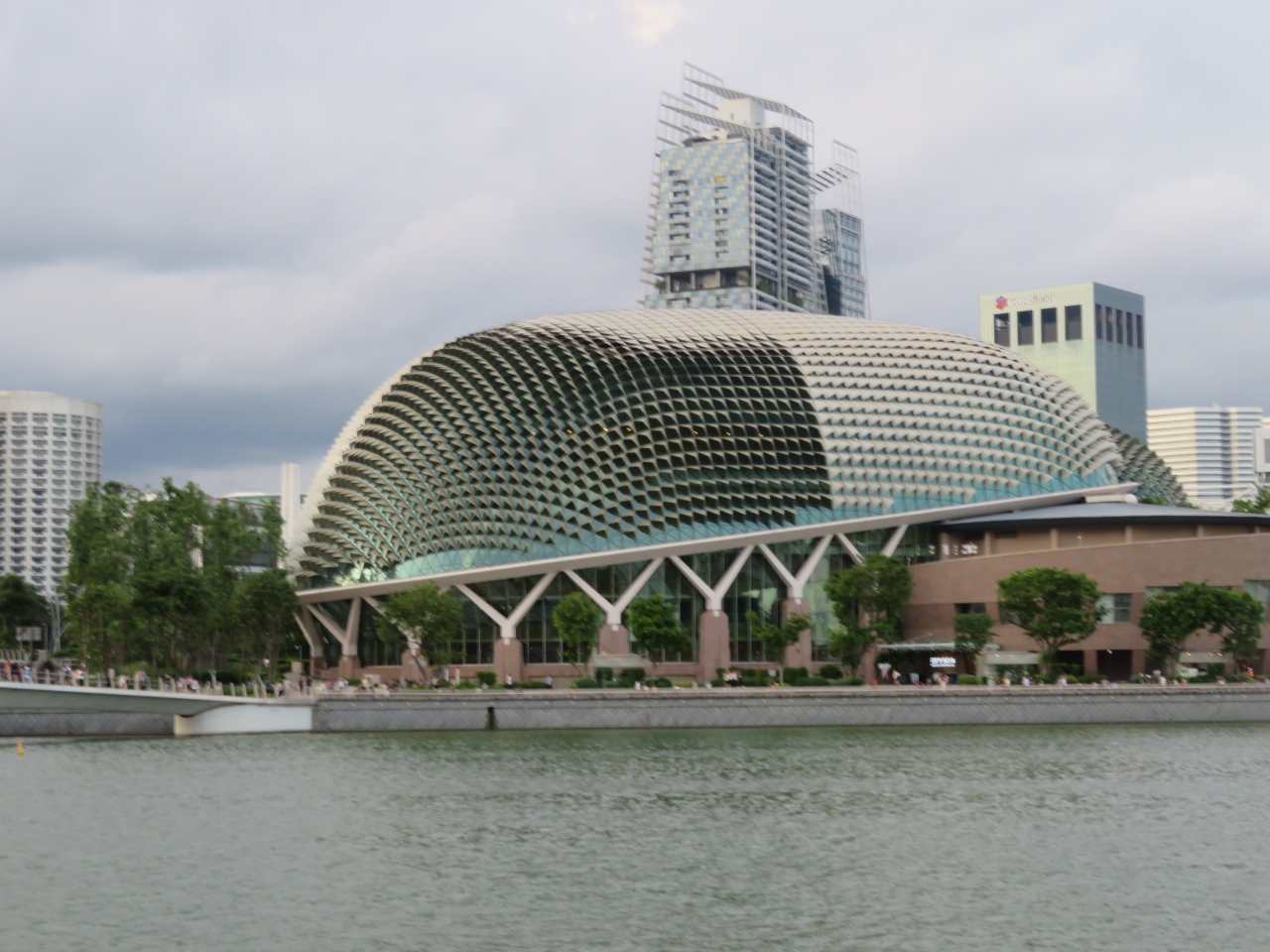 ベイエリアにある劇場ですが、形がユニークで一体なんだろうと思います。三角の形が棘のように出ているので通常「ドリアン」と言われているそう。本当にその通り。夜になるとライトアップされてさらにドリアン度が増した感じがしました。