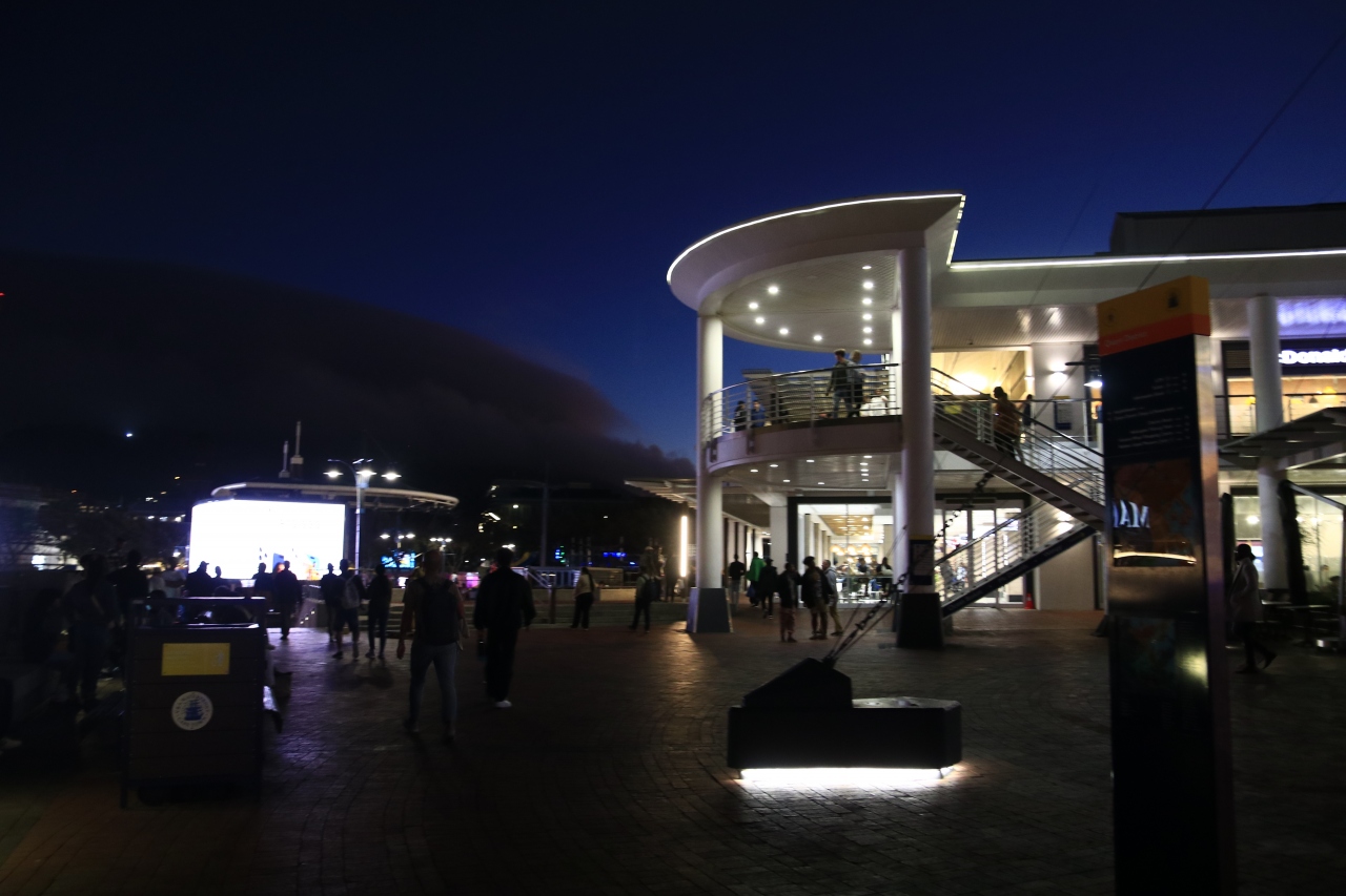 時間的に夜ではありましたが、ウォーターフロントの周辺はきれいで、警備もそれなりにされており、南アフリカの他地区のような危険性は感じられませんでした。(ただ、モールの敷地外には出ないようにきつく言われましたが…。)