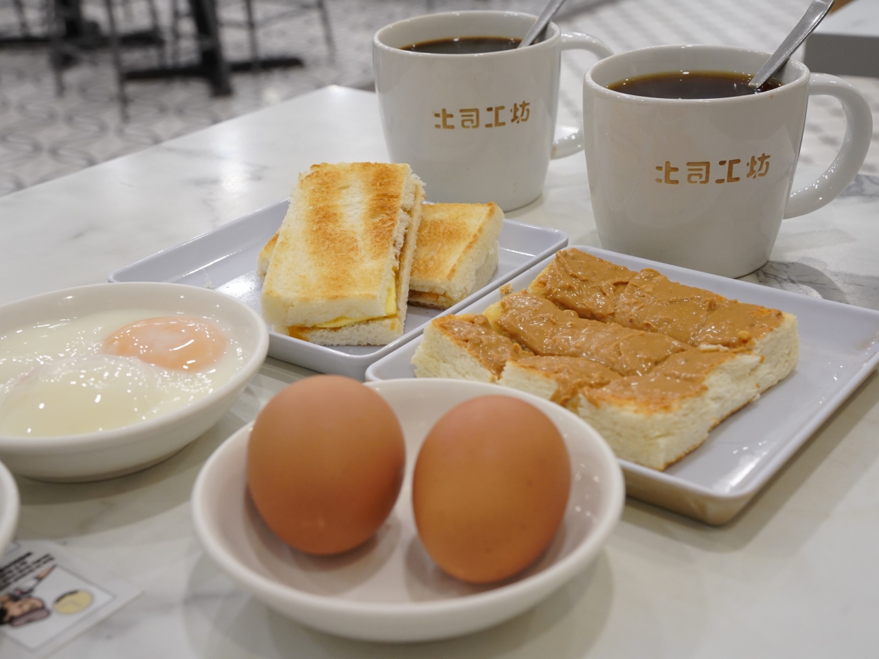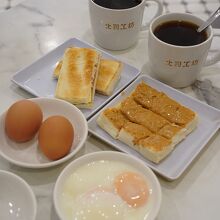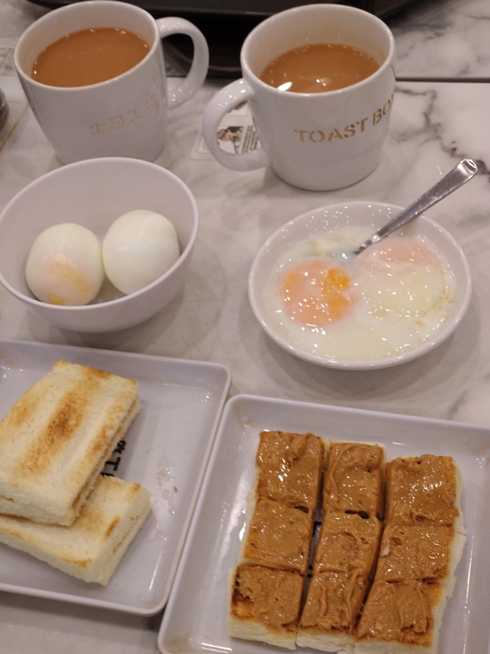 カヤトーストセット8ドル、ピーナッツバタートーストセット8.2ドルを注文しました。