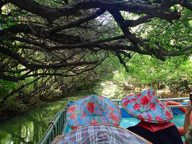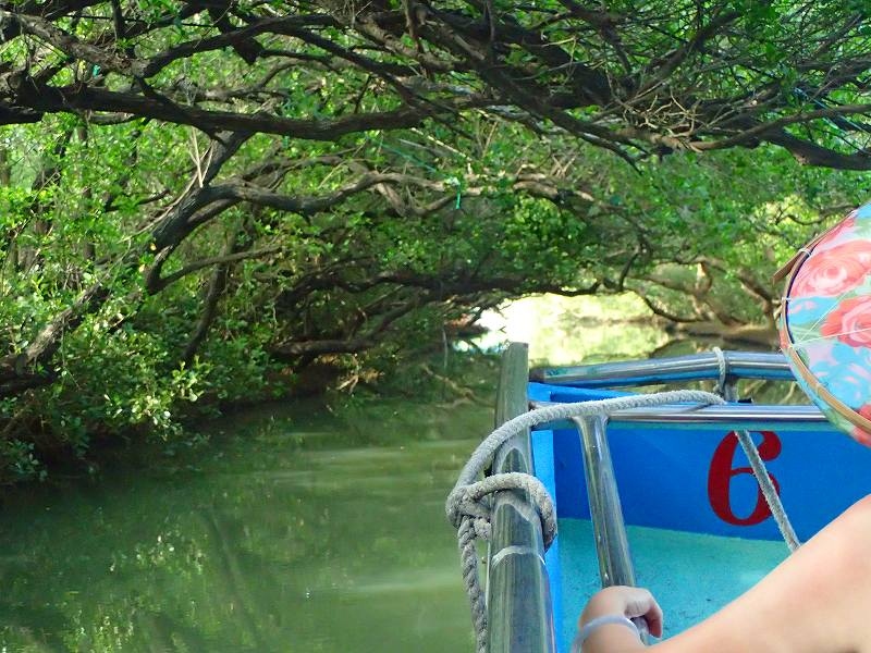 しばらく進むと、枝が横に伸びて、頭上をふさぐ状態。なるほど、これが緑のトンネルかと思いながら、首を下げて通過した。出て戻るまでに約30分。途中、白鷺にも出会い、ほどほどのエコツアーかな、と思った。