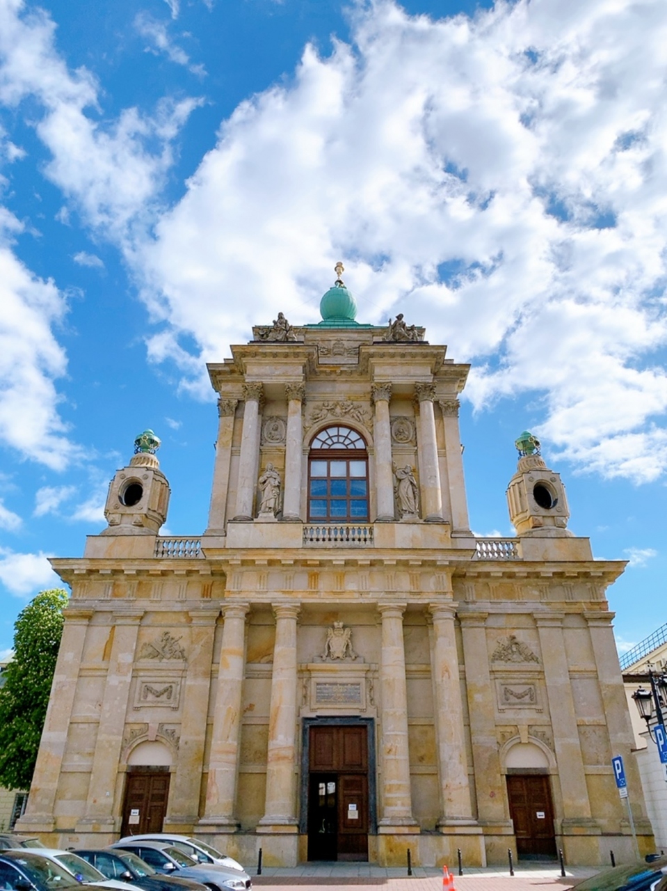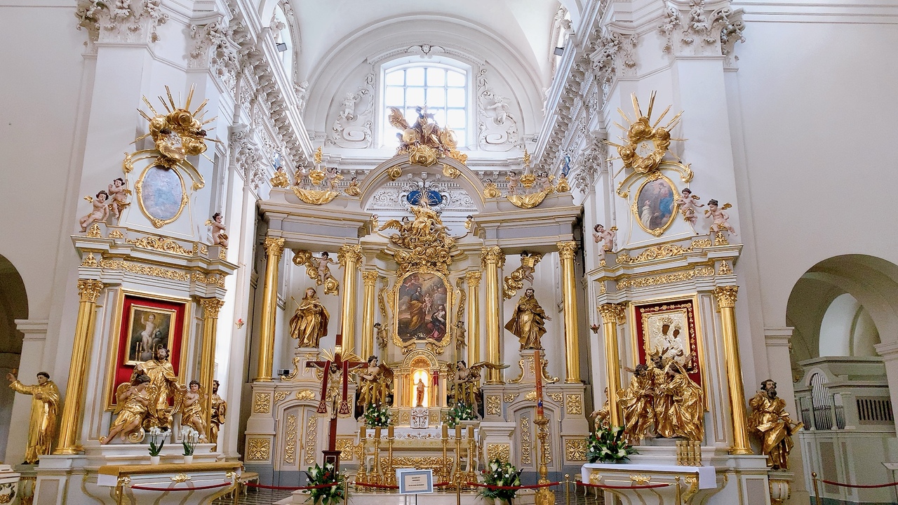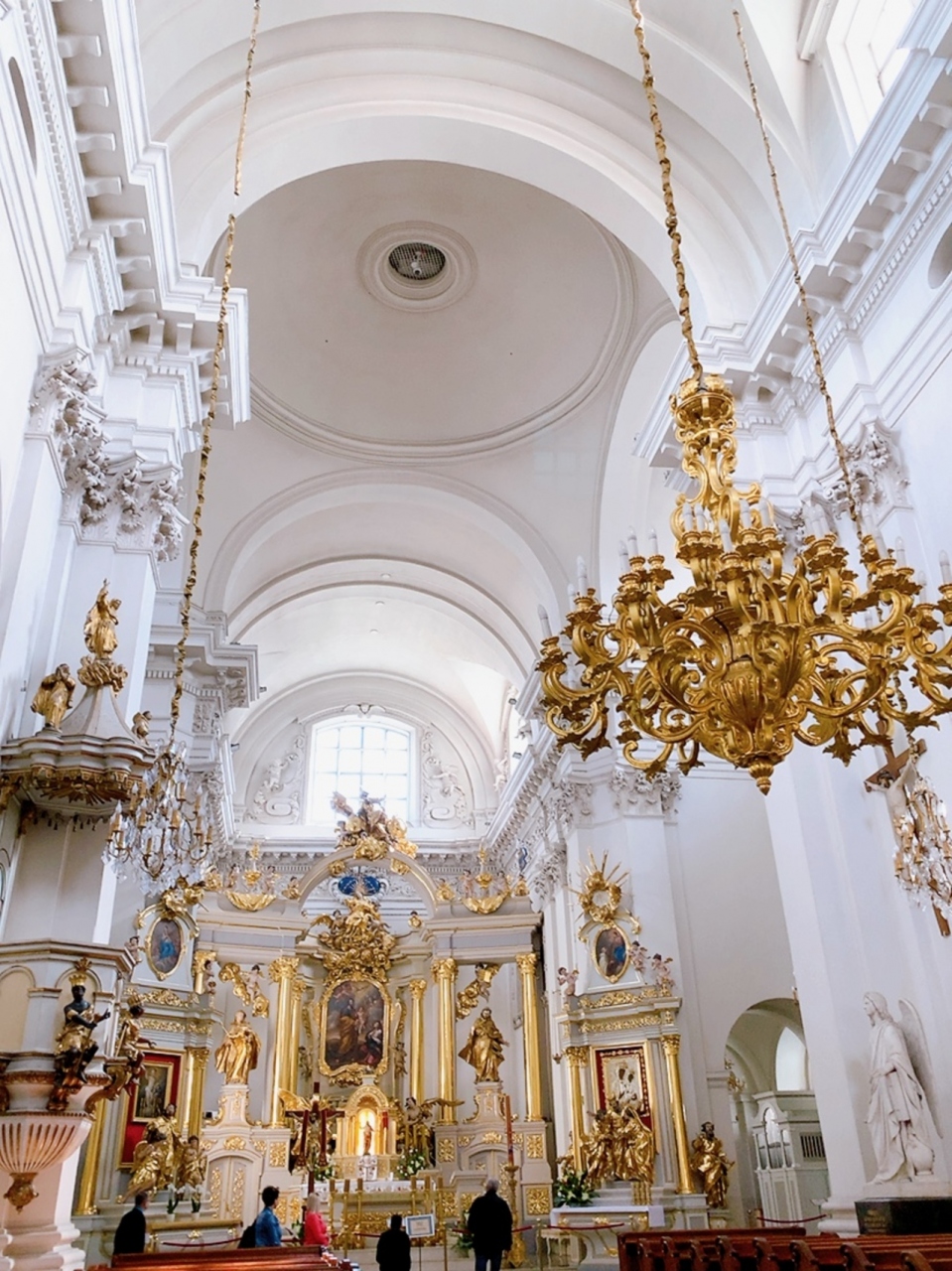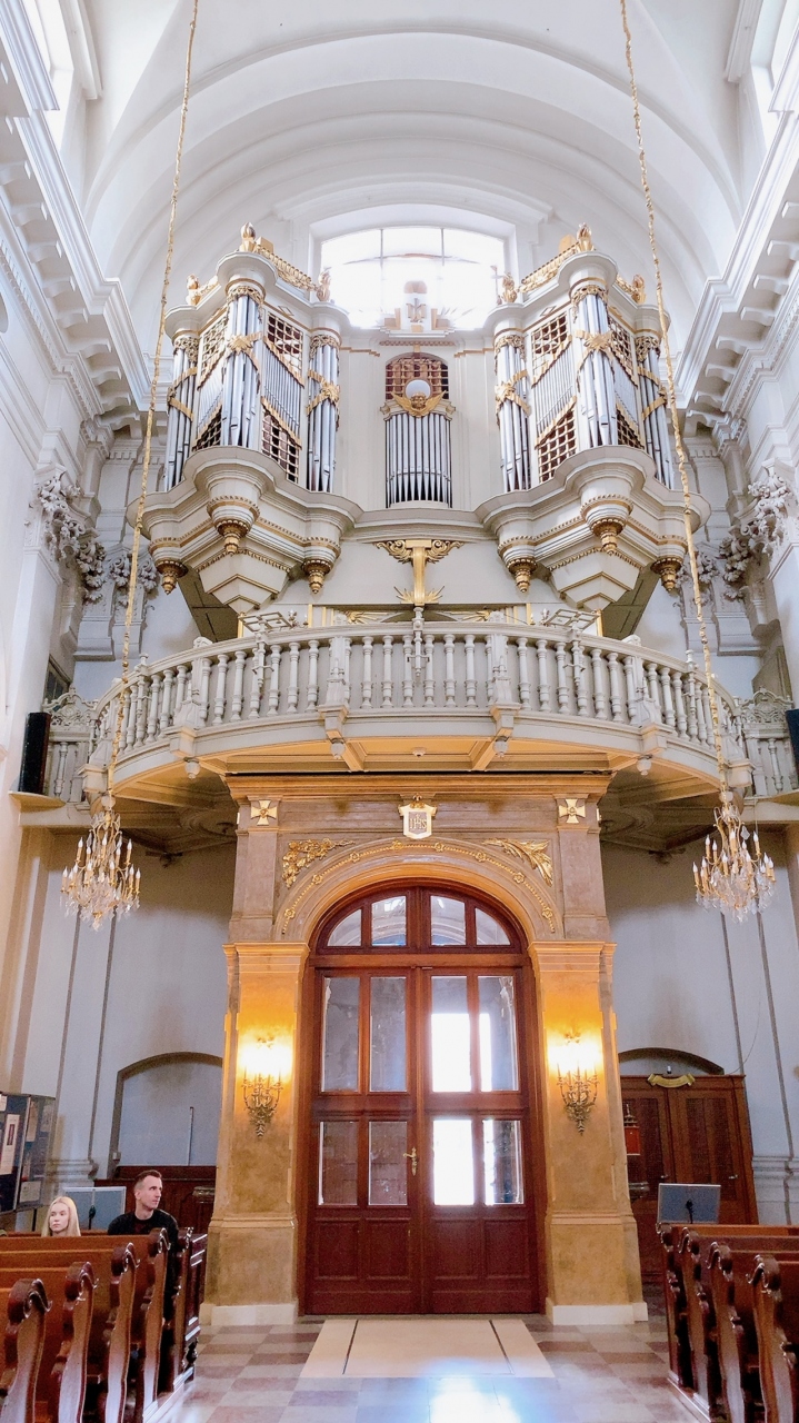 すぐ近くに、若き日のショパンが演奏したことで知られるヴィジトキ教会がありますが、それと比べるとなかなか凝ってるファサードが美しい教会だと思います。 教会内部は城を基調とし、ゴールドのシャンデリアなどの内装が豪華な教会でした。