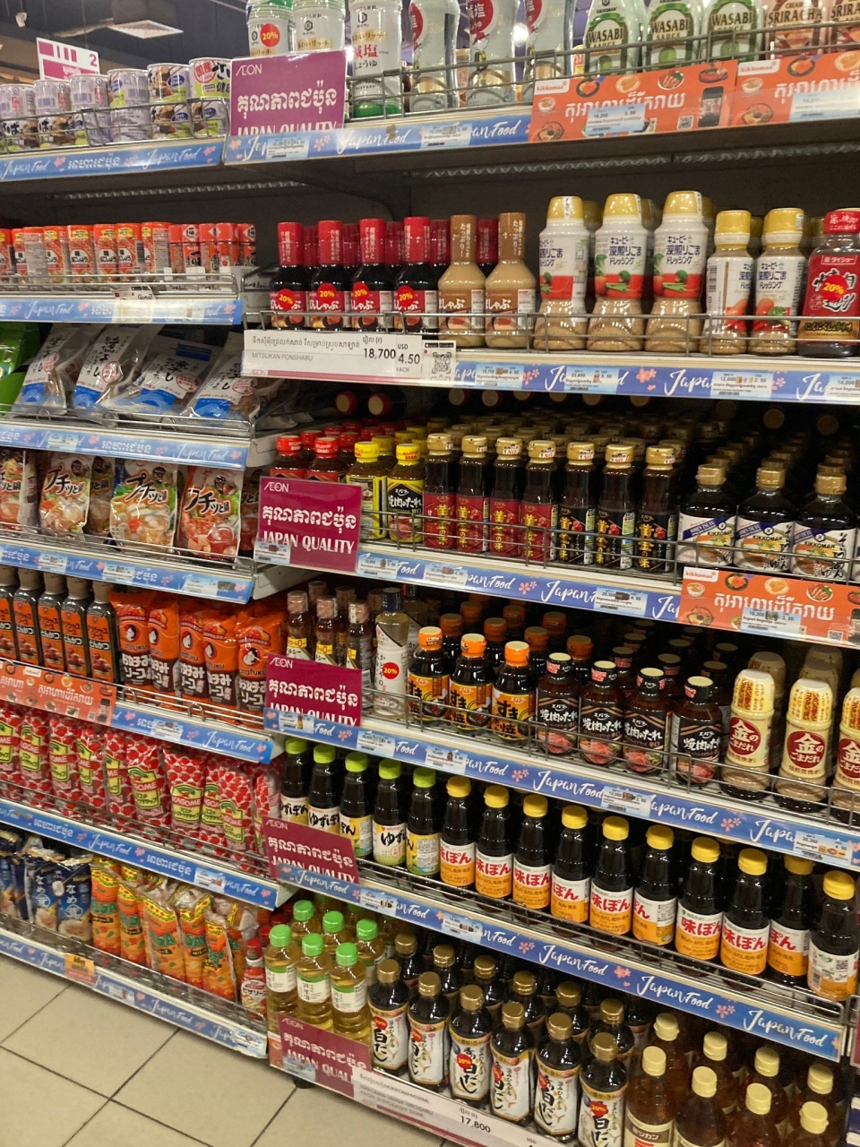 プノンペンには3つのイオンモールがあるが、最初にできたイオンモール。中では、日本食材が豊富にそろうだけではなく、トップバリュー製品は日本のコンビニと同じくらいの価格帯。20%、50%引きなども実施されていて、お得にお買い物をすることができる。海外在住者なら日本まで買い出しに行く必要もありません。