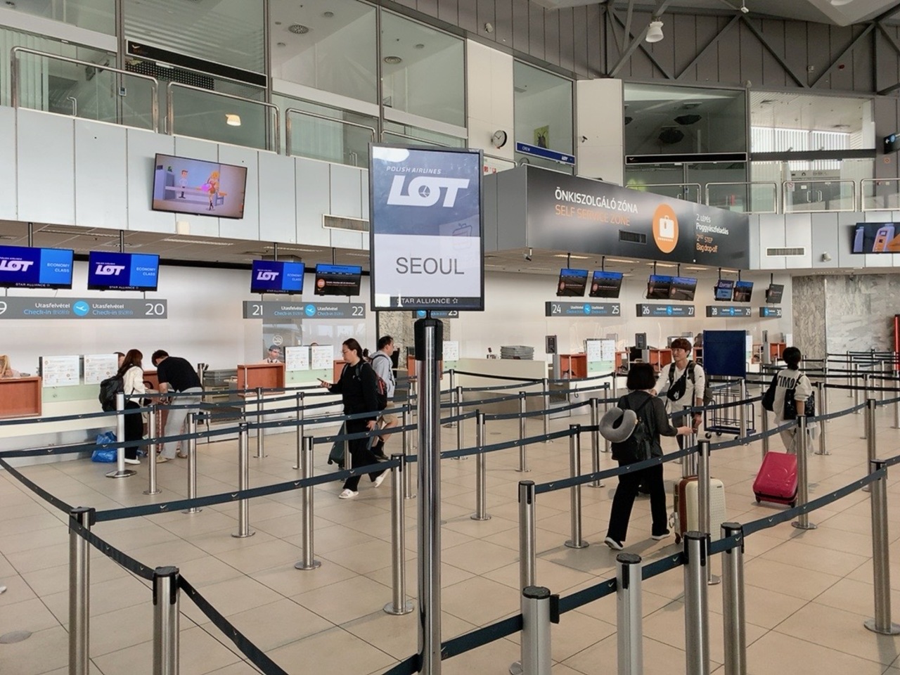 GWにハンガリーのブダペストを訪れた時に利用した国際空港です。 ポーランドのワルシャワ空港から到着し、このブダペストの空港からLOTポーランド航空の直行便が韓国の仁川まで出ていました(毎日ではナイようです)。