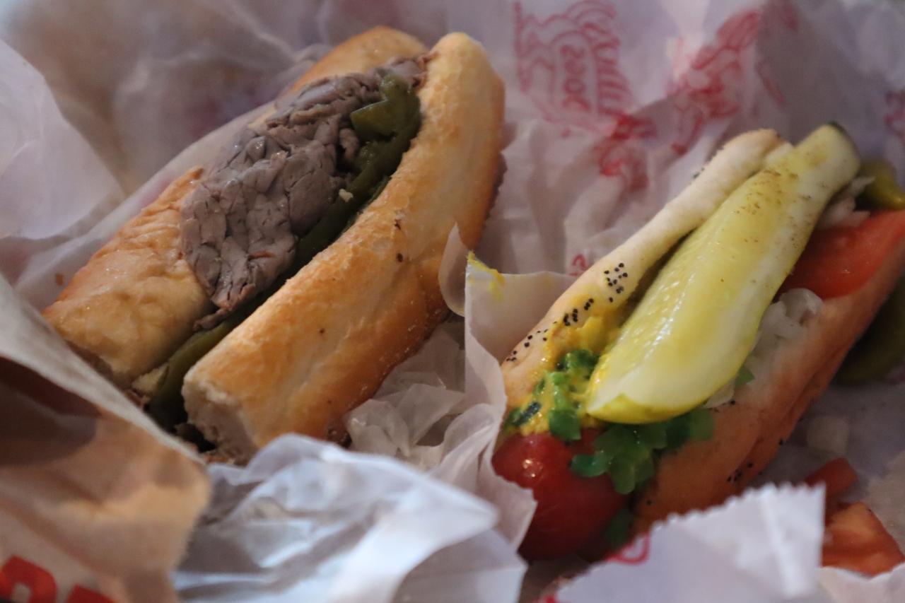 シカゴスタイルホットドッグやイタリアンビーフで有名なお店です。入った瞬間、オーダーシステムが分からず戸惑いましたが、係のおじいちゃんがこっちだよ~と教えてくれました。レジでオーダーし、番号が呼ばれたらピックアップするシステムです。ただ、番号は順番になっていないようで、自分達の順番がいつ来るか全くわかりません。結局20分待ち、しかもオーダーしたものが入っていなかったり、サービスはいまいちです。ホットドッグとイタリアンビーフをオーダーしました。ホットドッグは好きですが、イタリアンビーフは普通でした。