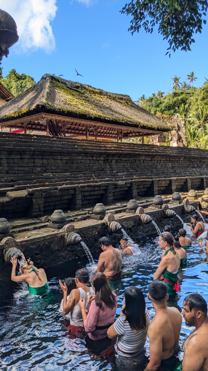 沐浴ができる寺院として有名です。入場料1000円払い、サロンを巻いて入ります。午後にいったらそこまで混んでいなかったです。準備してなかったので沐浴せずに頭に聖水をかけるだけ。自力でいくのは無理なのでチャーターなどしていくのが良いです。