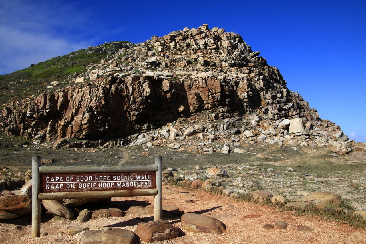 喜望峰というと、南アフリカの観光地として有名ですが、ケーブルカーや灯台があって登る山をイメージしますが、実は喜望峰は別で、ヨーロッパ側から航海してきて最初に気付いた小高い丘が本当の喜望峰です。