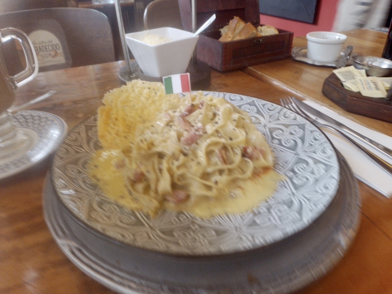 いただいたのはカルボナーラ。ウルグアイでは珍しく、日本人好みの美味しいパスタだと思いました。ただ、日本ではランチコースが食べられるようなお値段でした。