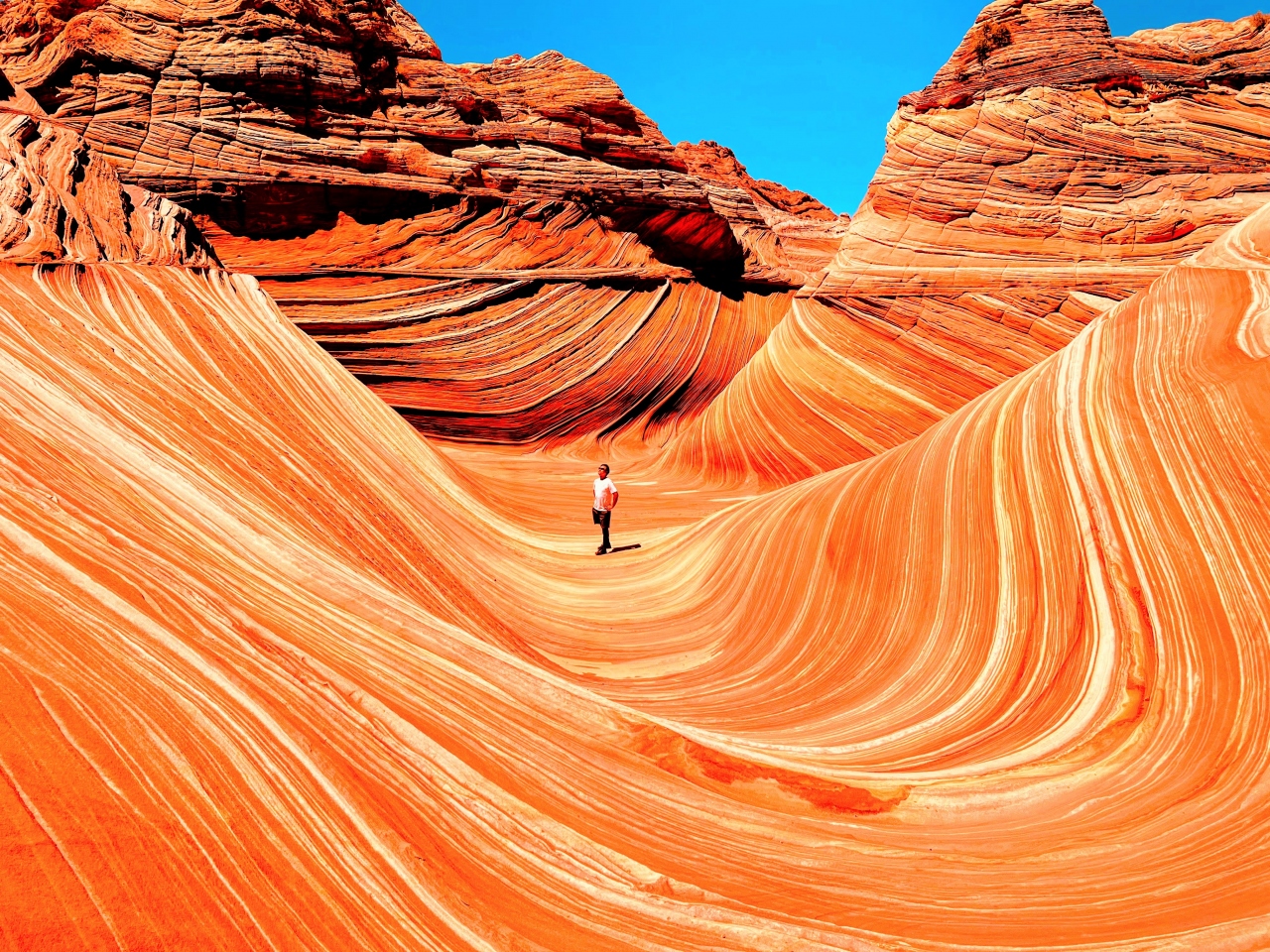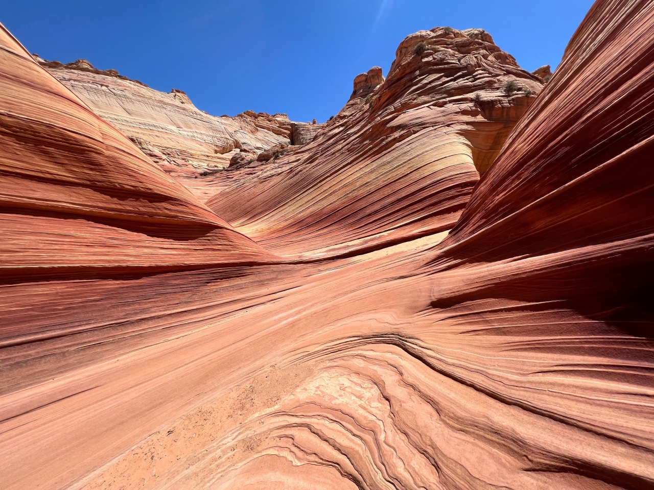 着いたのは13時頃だったので日が高くウエーブには一切の影が無いので写真を撮るには良いがとにかく熱い。持っていた温度計を見ると47度になっていた。誰もいないウェーブで景色を楽しみながら撮影をし1時間ほどいたがあまりの暑さにこれ以上ここにいるとやばいと思い早々に切り上げることに。