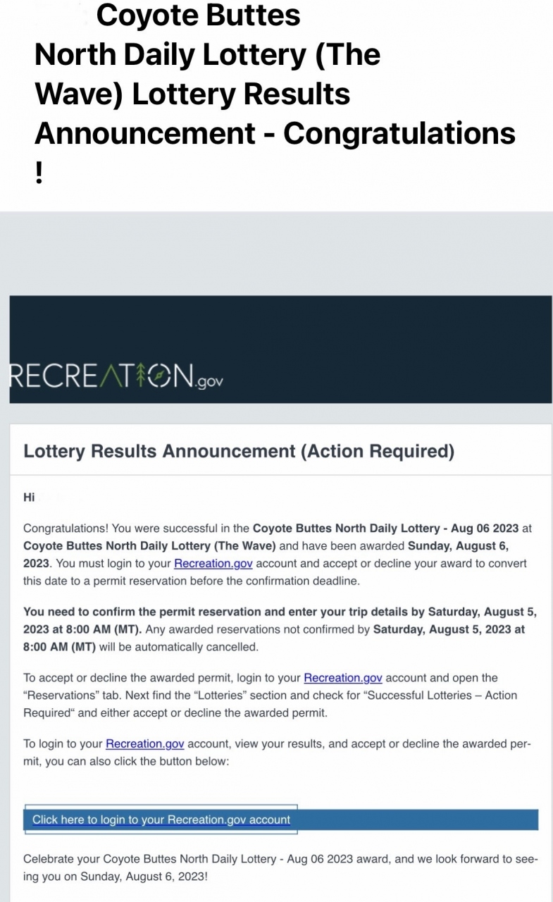 締め切り時間の1時間後にメールで当選結果が分かる。タイトルにcongratulations!と記載されているので直ぐに結果が分かる。当日中に本当に行くかどうかの確認をしお金を支払って申し込む。翌日に指定したページかカナブのインフォメーションセンターでオリエンテーションを受けないといけない。これを受けないとパーミッションがもらえない。オリエンテーションはⅠ時間ないくらい。