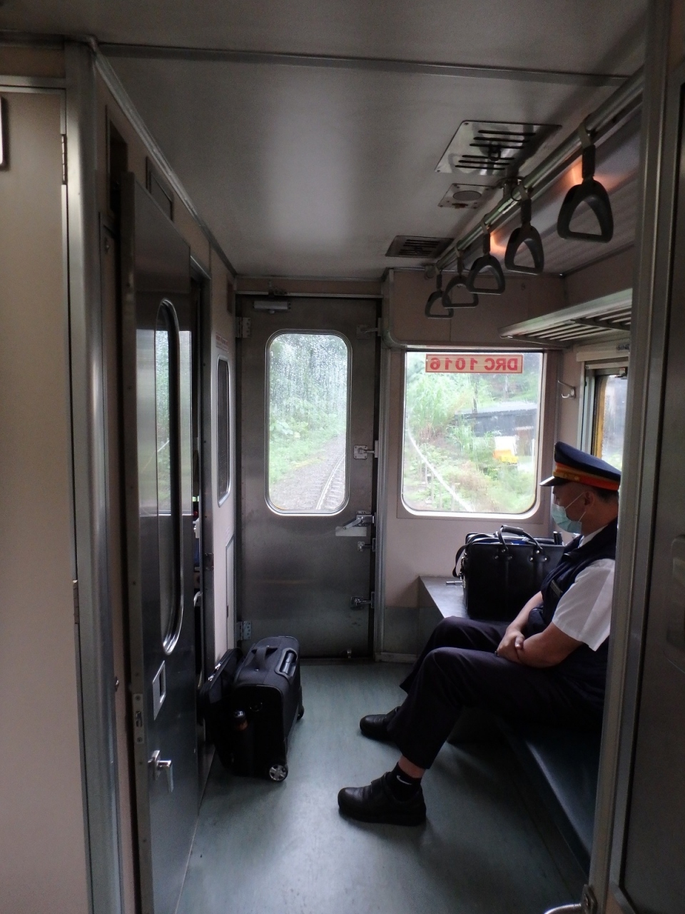 駅は谷間のようなところにあり、ローカル線の駅という雰囲気。2024年3月から1年間、この先にある終着駅の八斗子までの区間が法面工事のために運休しており、私たちが訪れた2024年6月現在ではここが終着駅となっている。待合室などは無いが案内板とICカード用の改札端末が設置されていた。