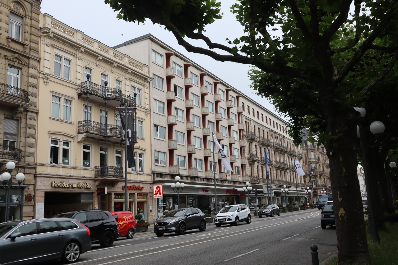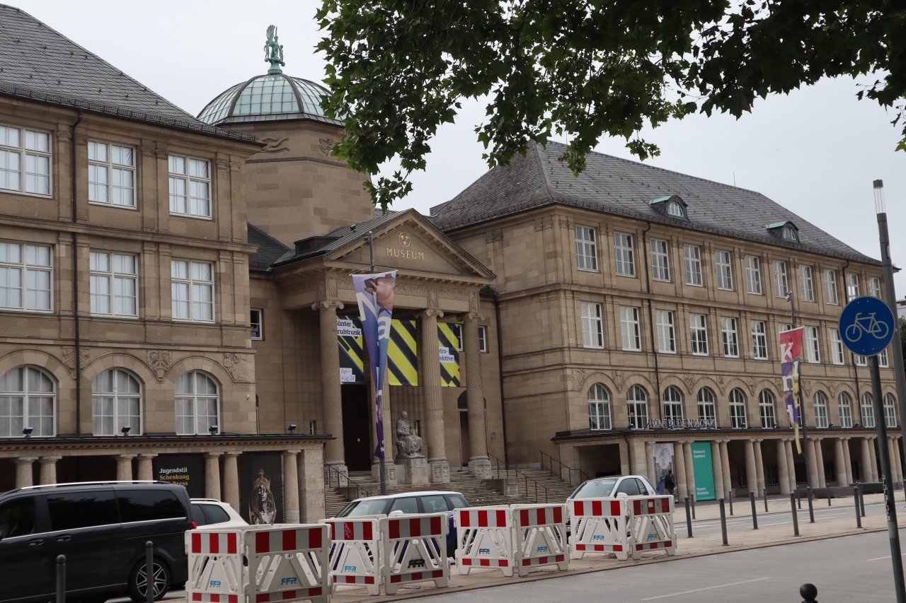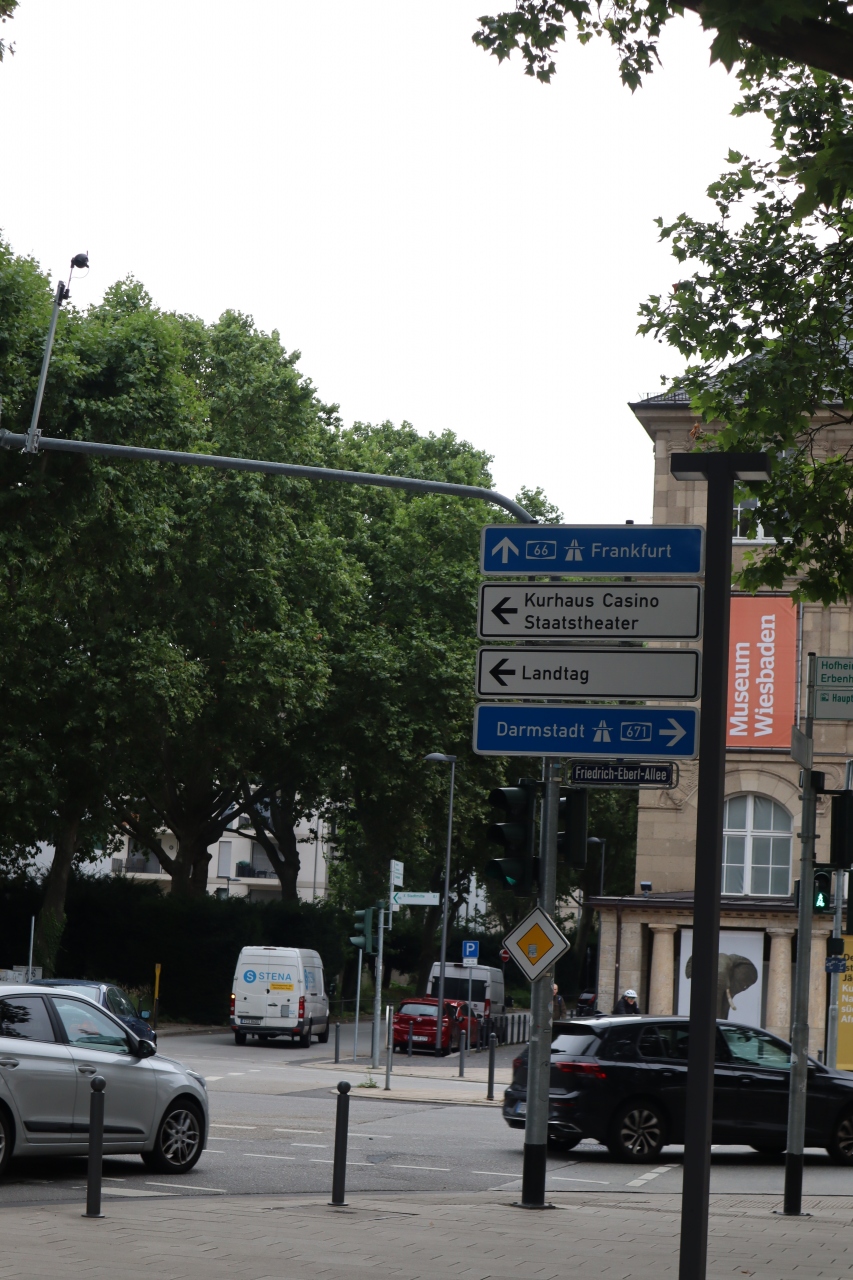 美術館からヘッセン州立劇場まで緩やかな坂道の道路・交通量は多いです