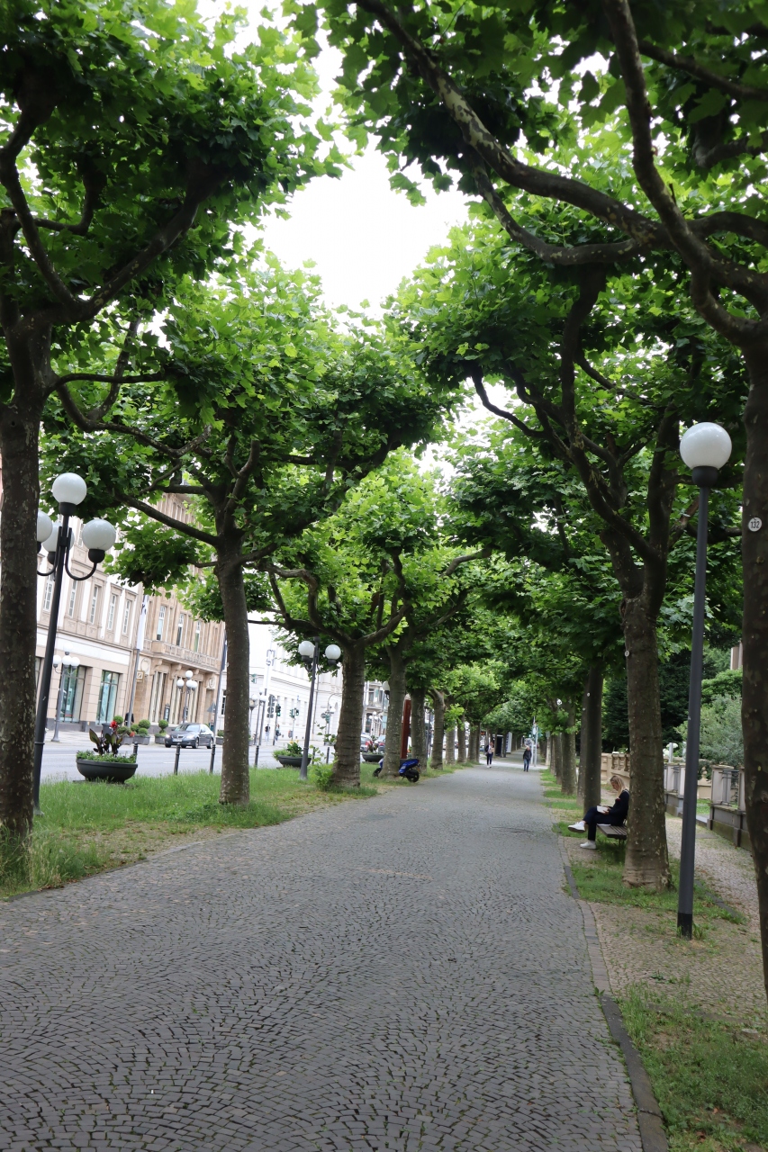 この道路は交通量も多くて、私はカジノ(クアハウス)方面に向かって右側の歩道を歩いたのですが。緩やかに登っていく道でした。