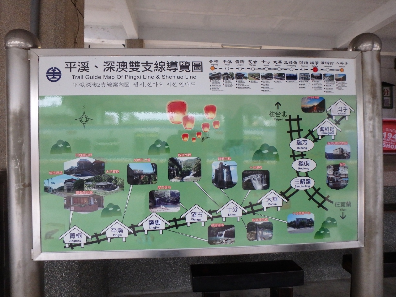 私たちは台北駅から瑞芳で乗り換えて深澳線で海科館まで行こうとしていた。瑞芳駅に降り立ち深澳線の乗り換えホームを確認していたら駅員や他のスタッフに「平溪線のホームあっちだ!」と丁寧に案内してくれた。そのたびに「海科館へ行く」と説明したが親切な人たちが多くいる駅なんだと思う。