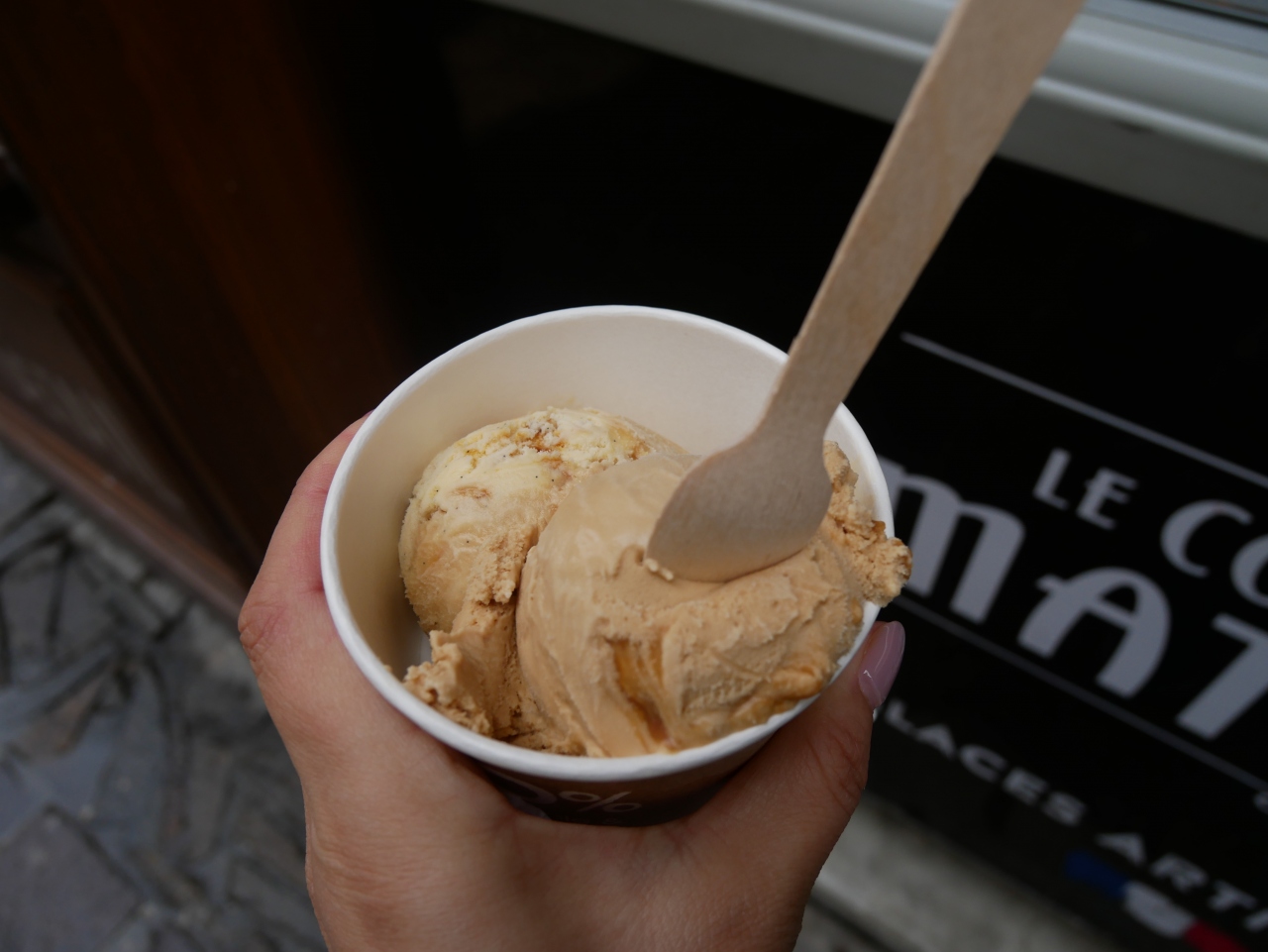 カルカッソンヌの街の中心部にあるチョコレート屋さんです。入口付近にジェラートがあったので思わず購入。キャラメルとクリーム・ブリュレのダブルで4.5ユーロ。何も考えずに好きな味にしたらインスタ映えしない色合いなってしまいましたが、両方とも濃厚で美味しかったです。