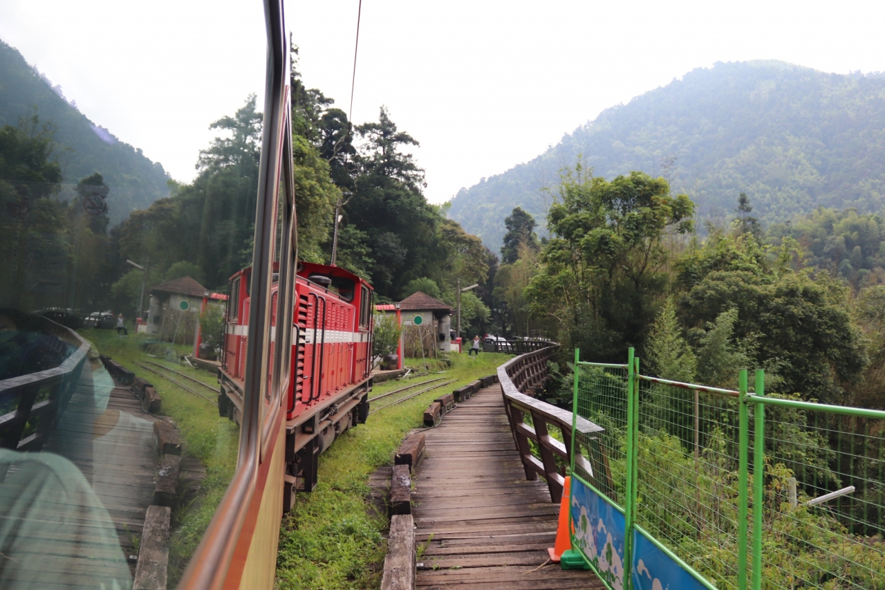 阿里山鉄道の途中駅。交力坪を通過し、トンネルが連続します。沿線には竹林も目立ってきました。23番とんねるを抜けると水社寮駅です。阿里山行の阿里山号はこの小さな駅を通過し、再びトンネルで昇っていきます。