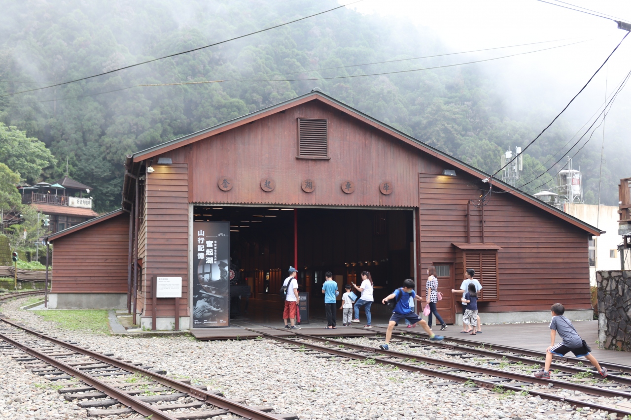 阿里山鉄道の主要駅で、全線復旧した阿里山号の阿里山行はこの駅で1時間ほど観光ランチのため停車します。駅周辺は大混雑です。駅構内には列車に乗らない観光客もたくさん入り込んでいました。駅構内には文化財的な車庫もありました。