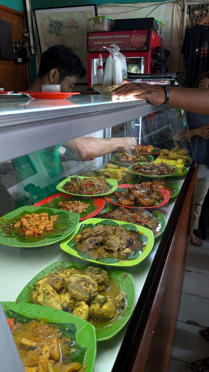 ネットで見つけたクタにある老舗のインドネシア料理(ジャワ料理)屋さん。メニュー料理よりショーケースに何種類ものお惣菜から選んでカスタマイズナシチャンプルがオススメです。日本人のオーナーさんだけど完全ローカルな味付け。料理の説明も助かる。野菜1品20円?くらい、肉系は40円?くらいだったかな。二人でビール込み1000円台。その夜ゴハンにも行くくらい気に入りました。