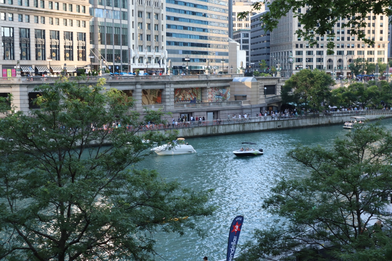 シカゴの中心を流れるシカゴ川。印象的な緑色の川と周辺のビルとが合わさった景観が素晴らしい。橋の上から見てもいいし、リバーウォークを歩いても良いし、リバークルーズもおすすめです。楽しみ方が沢山あると思いました。
