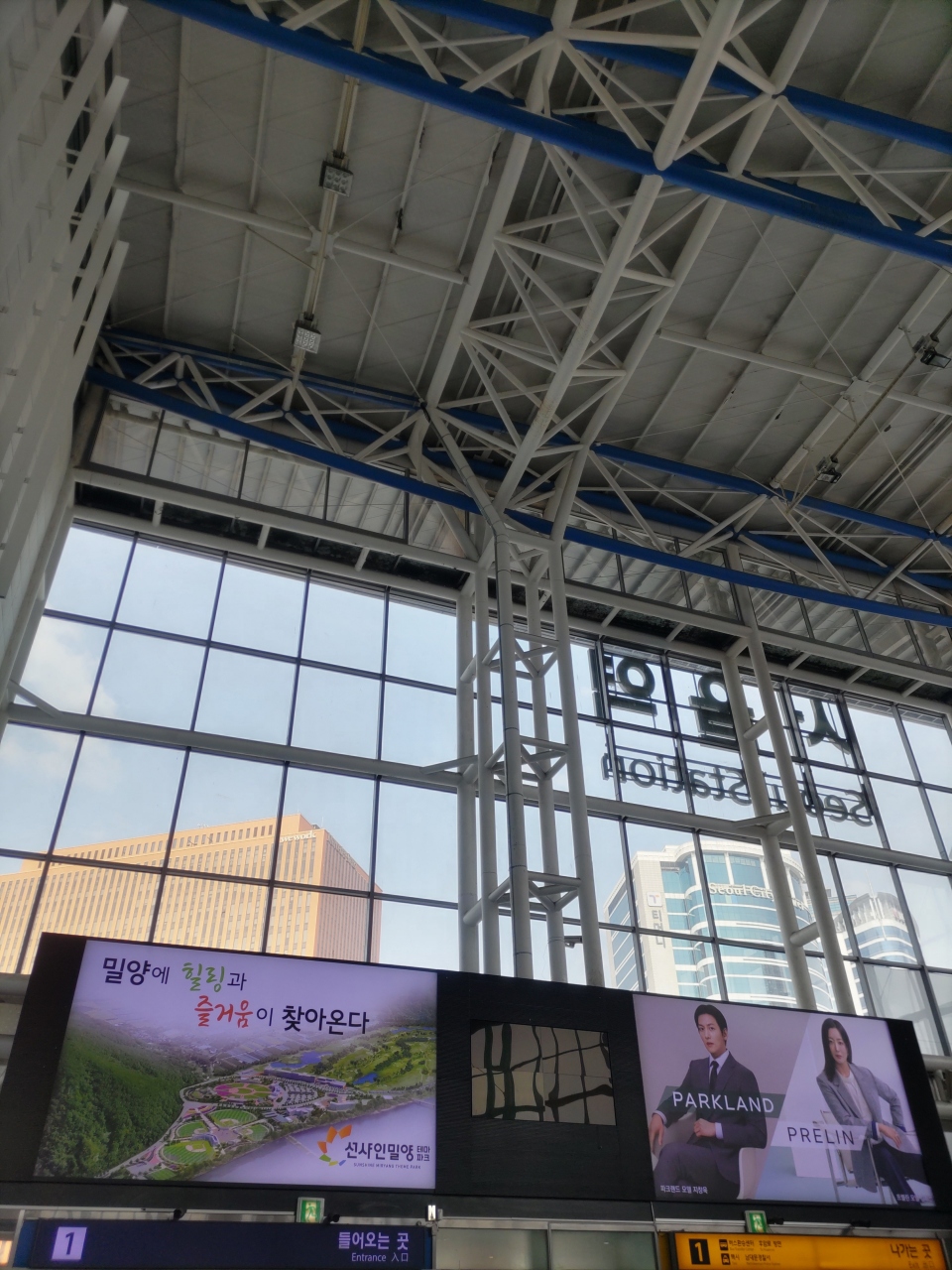 また一部駅でエスカレーター動いていない時間があったりするから、その辺は大荷物ある場合は注意が必要。日本でいう東京駅とかそういう規模の駅。ちなみに空港鉄道から一般的なソウルの駅エリアまで日本で言う京葉線の乗り場と京葉線以外の乗り場ぐらいの距離がある。