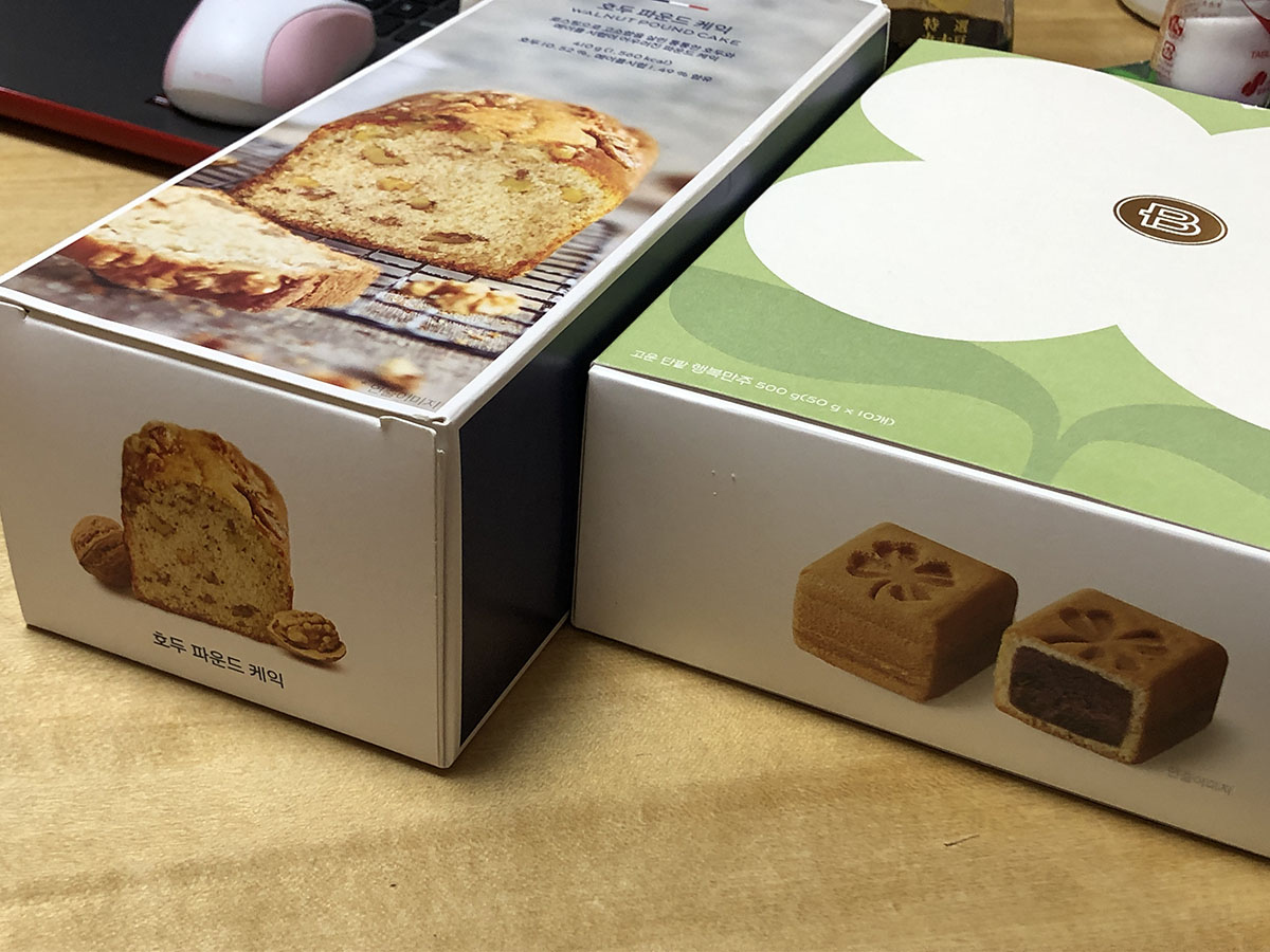 韓国の主要都市ではあちこちで見かけるベーカリー、パリバゲットの仁川空港店です。ランドサイドとエアサイドの両方にありますが、ランドサイドの方がお店は大きく、品揃えも豊富です。街中のお店と同じく、菓子パンからサンドウィッチまでいろいろあります。写真のようなお土産向けのものもあります。韓国風なものと洋風なものの両方あり、どちらも家族に好評なのでよく利用します。