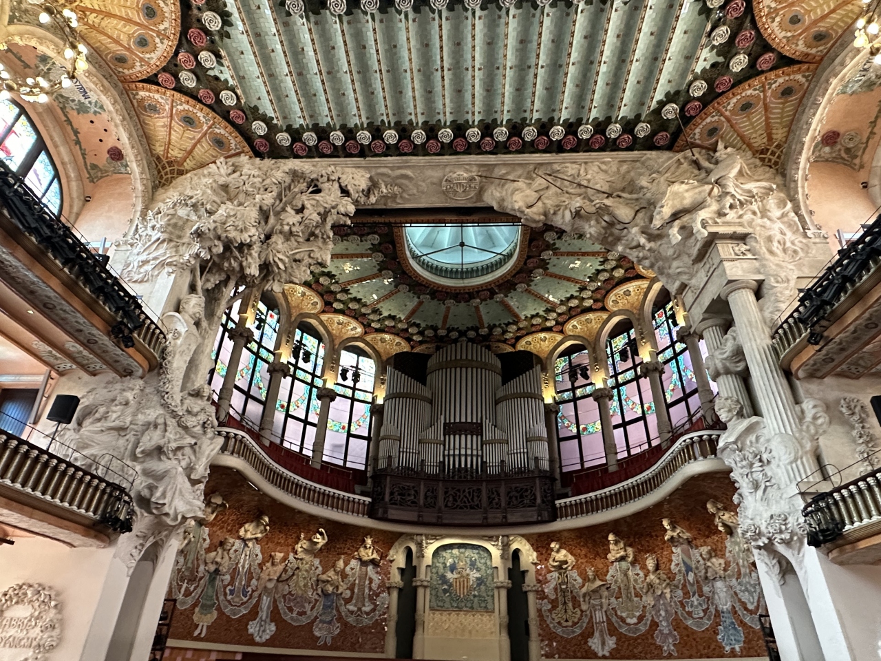 ツアー参加者のみ舞台に上がり、壁の装飾を近くで見られたり、そこで目の前のパイプオルガンの演奏も聴けます。