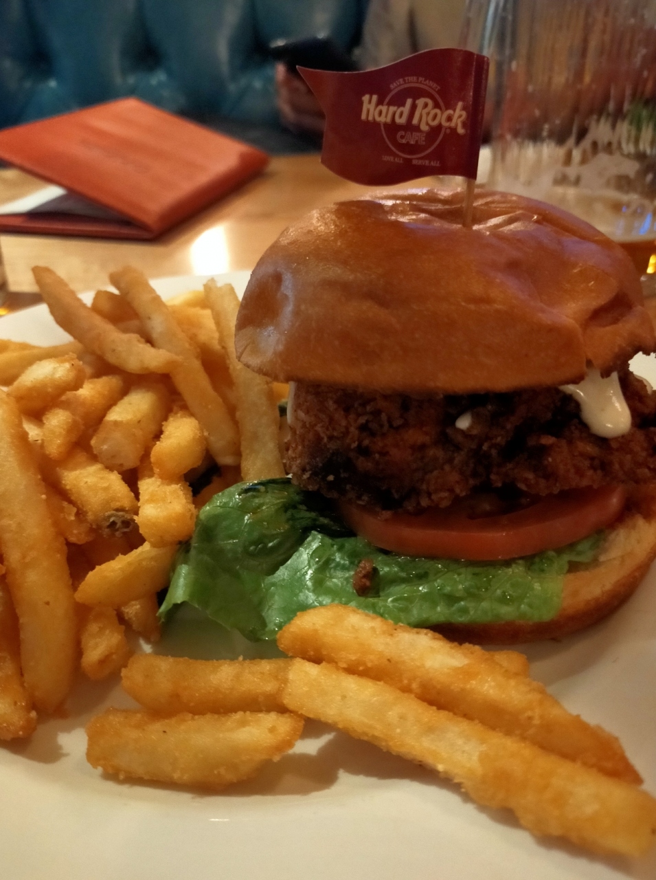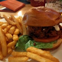 お店の外には大きなギターのオブジェがあり、目立つ外観です。こちらでランチしました。週末でしたが、ランチのピークは過ぎている時間だったので、待つことなく入れました。観光地価格でちょっと高めだと思いましたが、雰囲気は良かったです。アメリカとの国境が近いからか、メニューにはカナダドルと米ドルで値段の記載がありました。