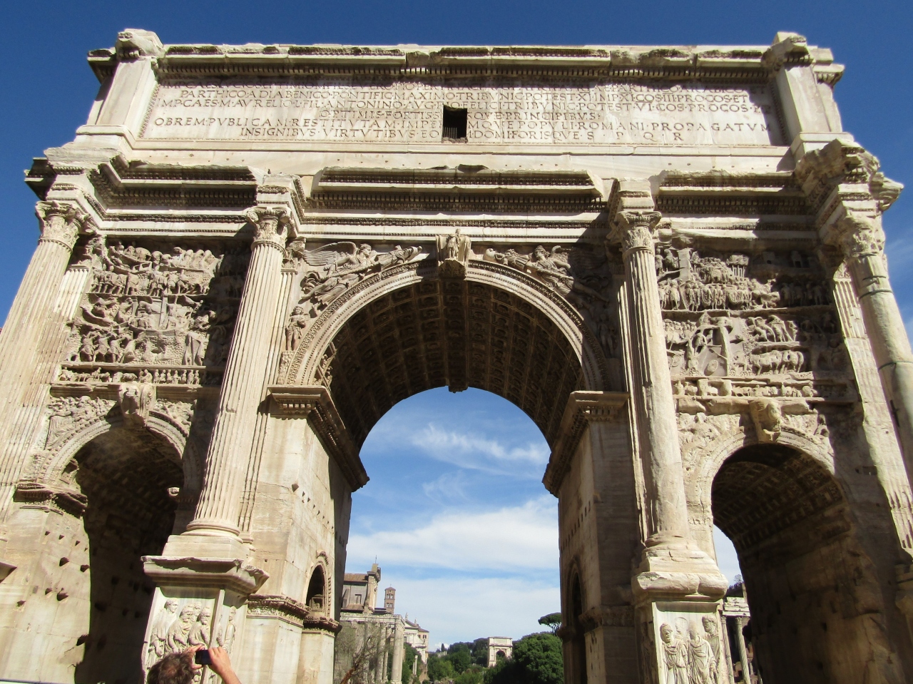 フォロロマーノの北西端にあり、セプティミウス セウェルス帝とそ息子 カラカラが、199年迄のパルティア戦争に勝利した記念に、203年に完成した凱旋門です。