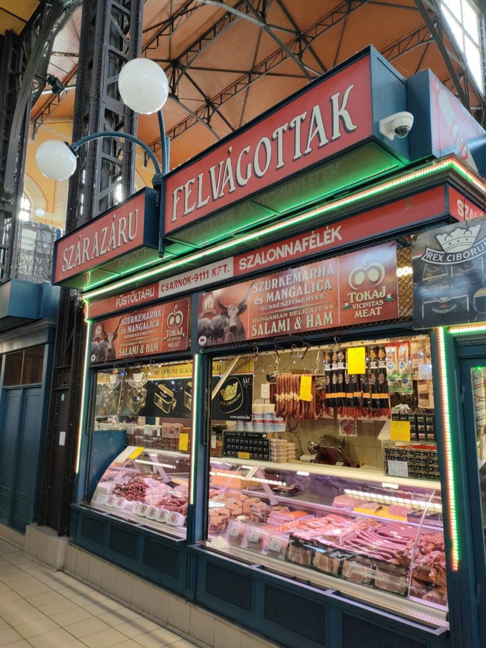 お肉屋さんがたくさんあってハムや、サラミなど加工肉がたくさん並んでいます。お国柄的にも魚より肉を食べる文化というのがわかる店舗のラインナップでした。