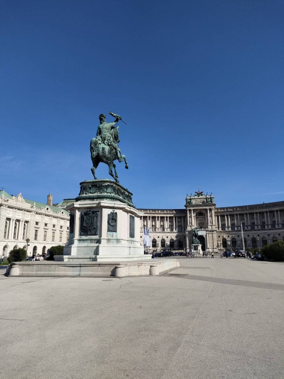 ウィーンのホーフブルク、つまり王宮前に広がる広場です。ホーフブルクが半円のように弧を描くようなつくりになっているので自然とこの広場は半分ホーフブルクに囲まれるような形をしています。
