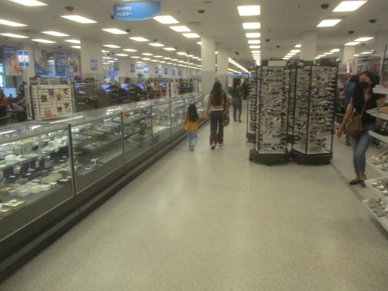 ロス ドレス フォー レスでは服や靴が販売している印象がありましたが、小物、アクサリー関係もたくさんの種類を扱っていました。激安商品はお客さんが手にとって、触って、試すことができます。一方、高価な商品はショーケース内で保存されていました。