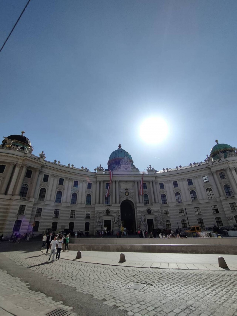 ウィーンを代表する建物、ホーフブルク(王宮)の門です。ミヒャエル門といい、その前の広場をミヒャエル広場といいます。門のまわりは豪華な彫刻だらけでドーム屋根もついていて圧倒されるほどの美しさでした。歴史が流れても彫刻の細やかさは健在です!