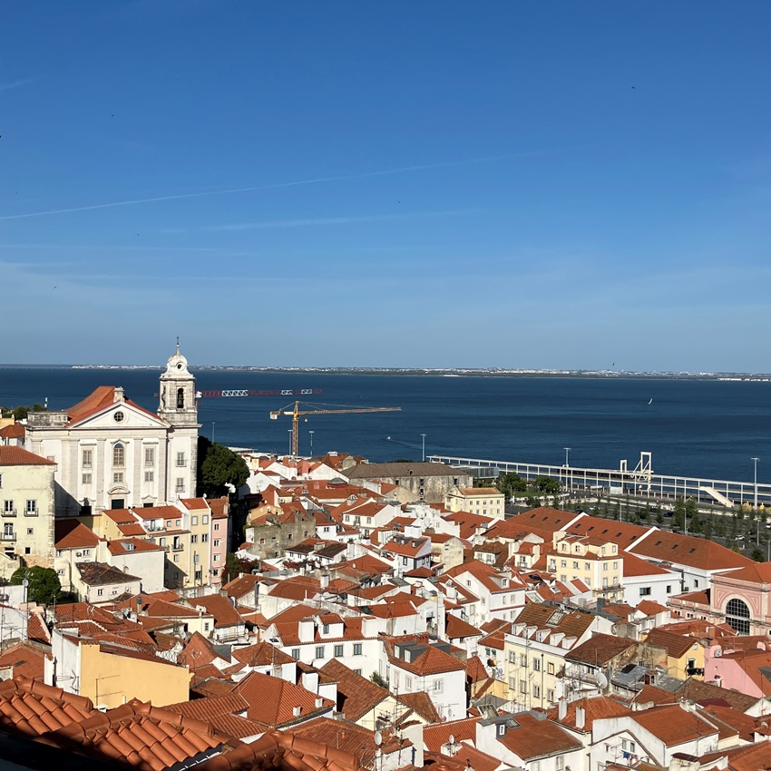 ポルトのドウロ川が、すぐ向こうに対岸が見える川幅なのに対し、リスボンのテージョ川は、川幅が広く、もはや海のようです。コメルシオ広場の突き当りは、まるでビーチサイドのような賑わいで、パラソルの売店が出ていたり、川沿いの景色をのんびりと楽しむ人がいっぱいです。アルファマ地区に行けば、坂の上なので、行きかう船もよく見えます。