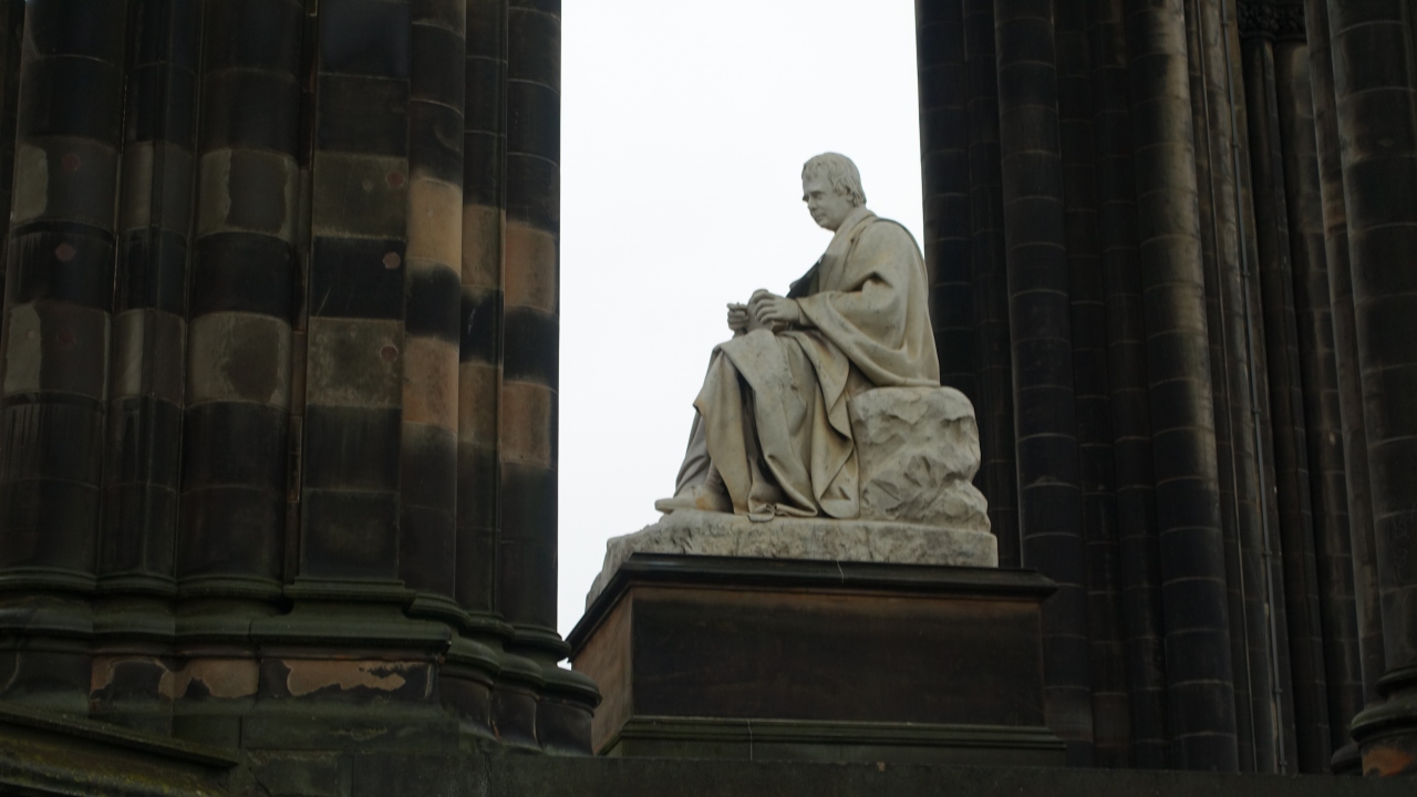 North Bridgeからすぐのプリンスィズ・ストリートの横に建つ存在感十分の記念塔。歴史小説で名声を博したスコットランドの作家サー・ウォルター・スコットを讃えたもので、教会の尖塔を思わせる塔の高さは61mと作家の塔としては世界最大。白いスコットの像は塔の中の見える高さに鎮座している。入場料を払えば塔の上まで登れる。